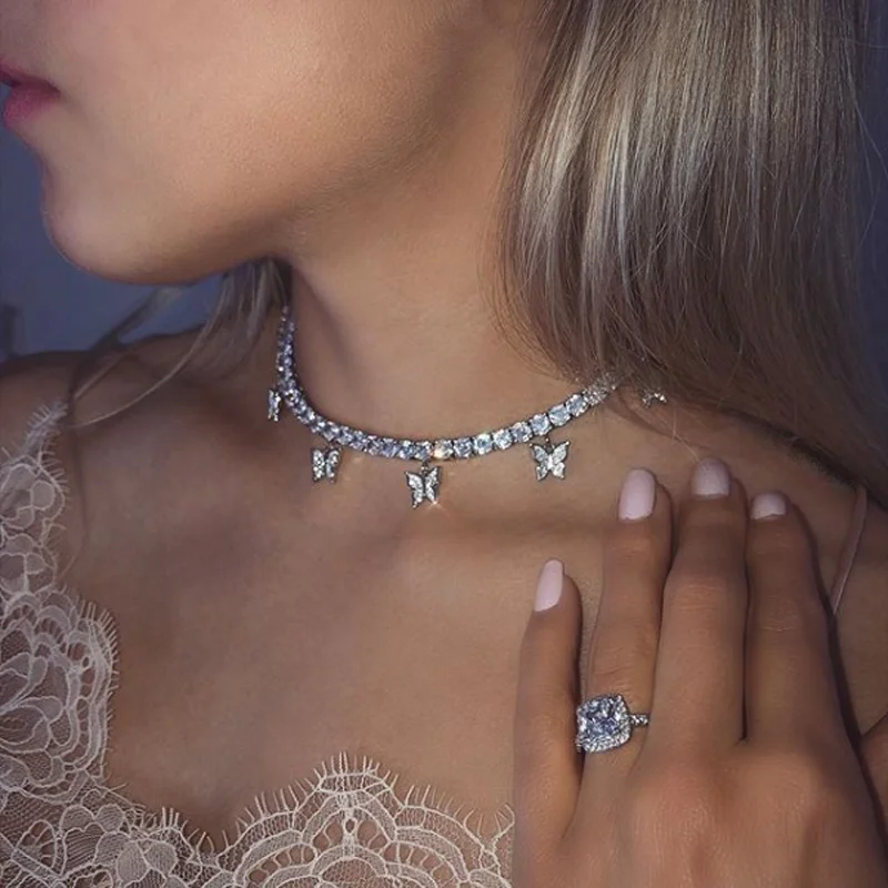 Цепочка Женская теннисная с подвеской-бабочкой, 32 + 10 см