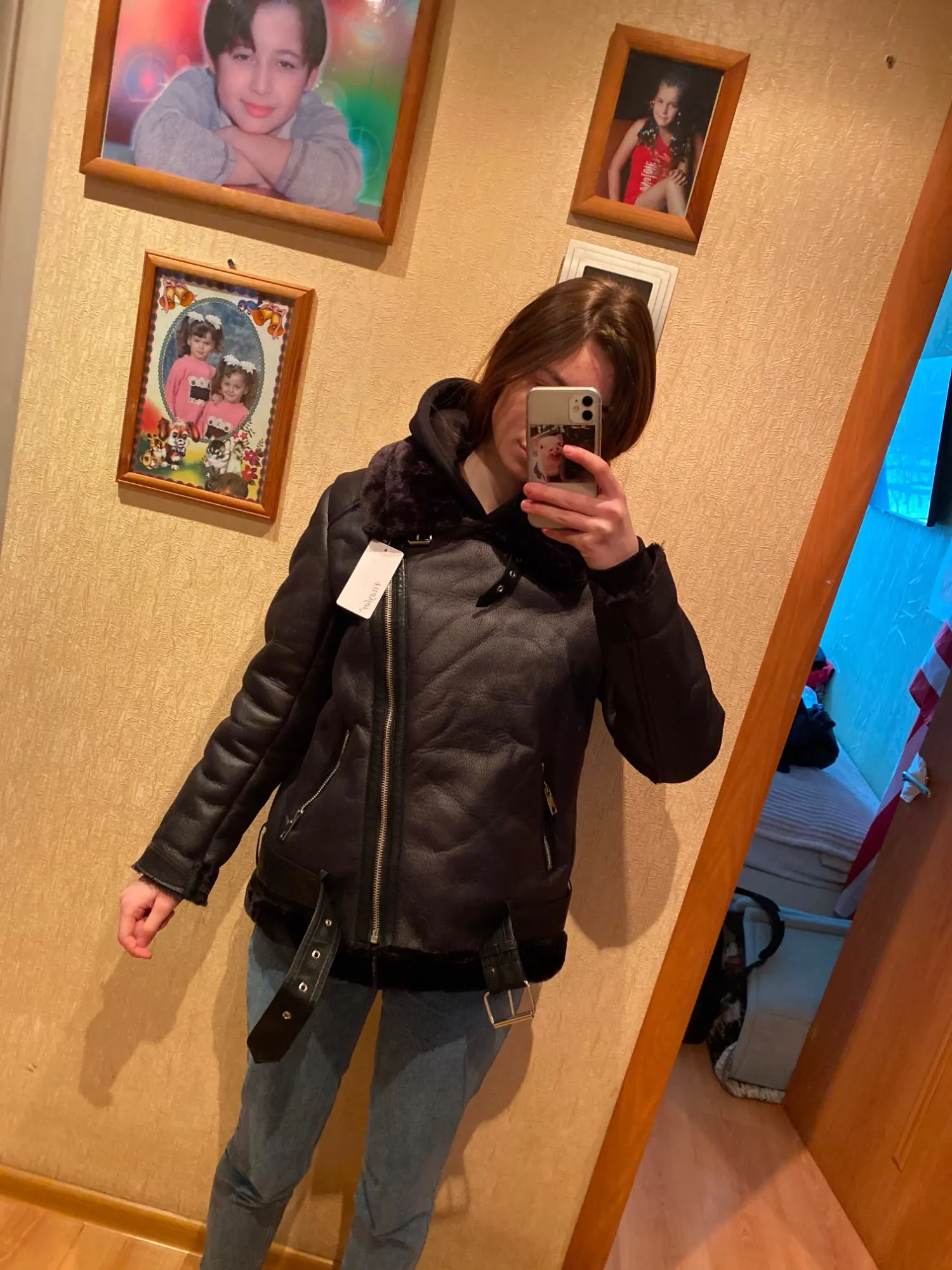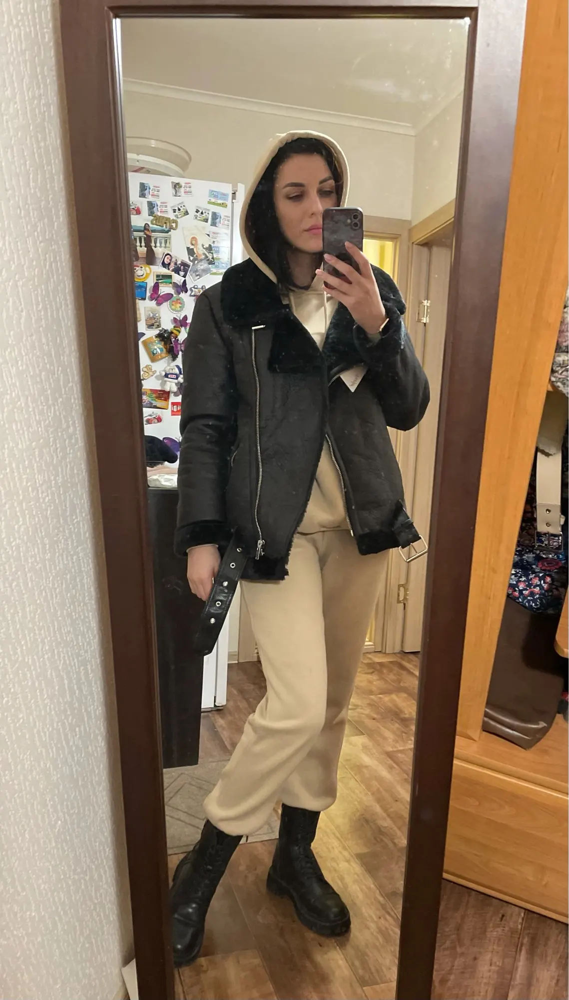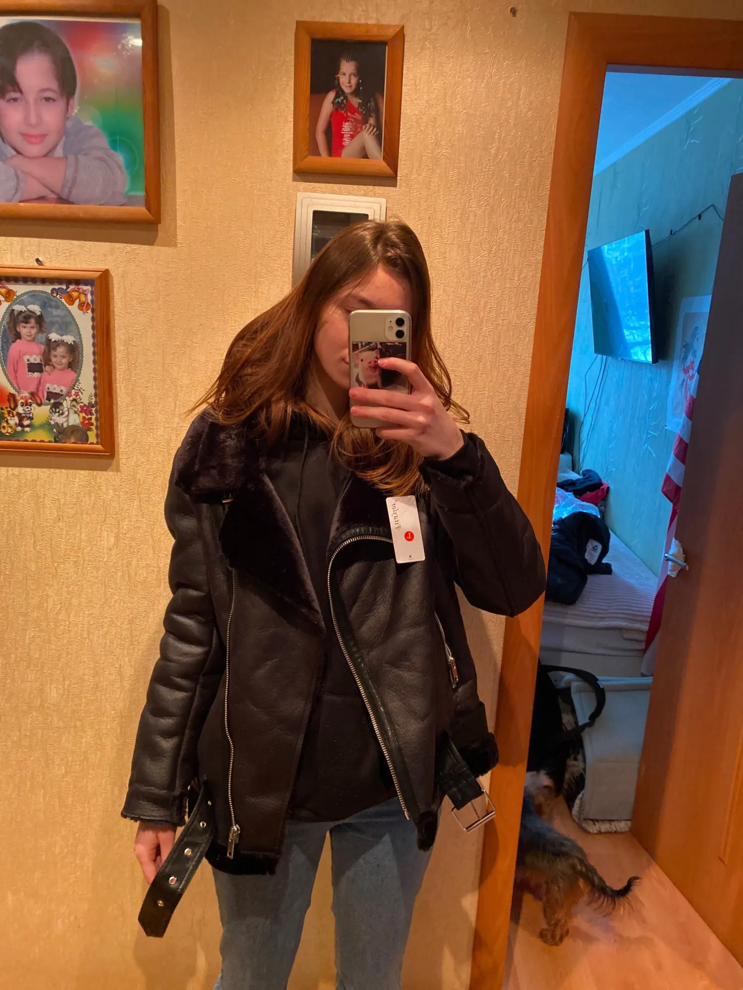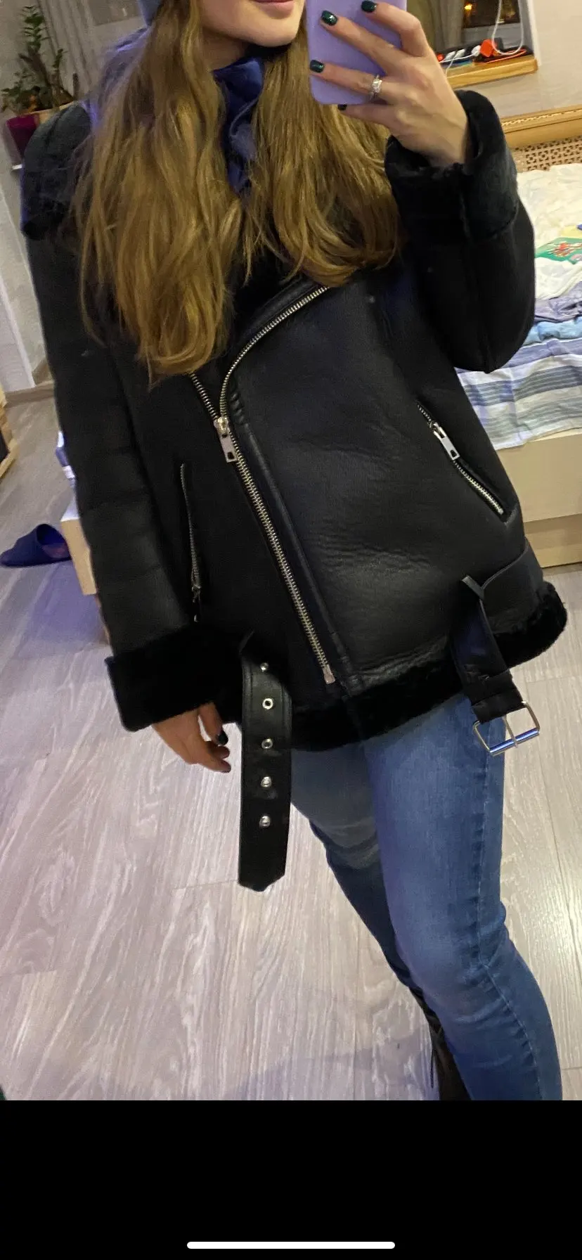 Классная дублёнка-авиатор, нисколько не уступает дубленке из зары или страдивариуса. На параметры 86/65/90 рост 168 взяла L, сидит как оверсайз, попу прикрывает, правда рукава длинноваты, но можно подогнуть. Доставка быстрая 14 дней до Сочи