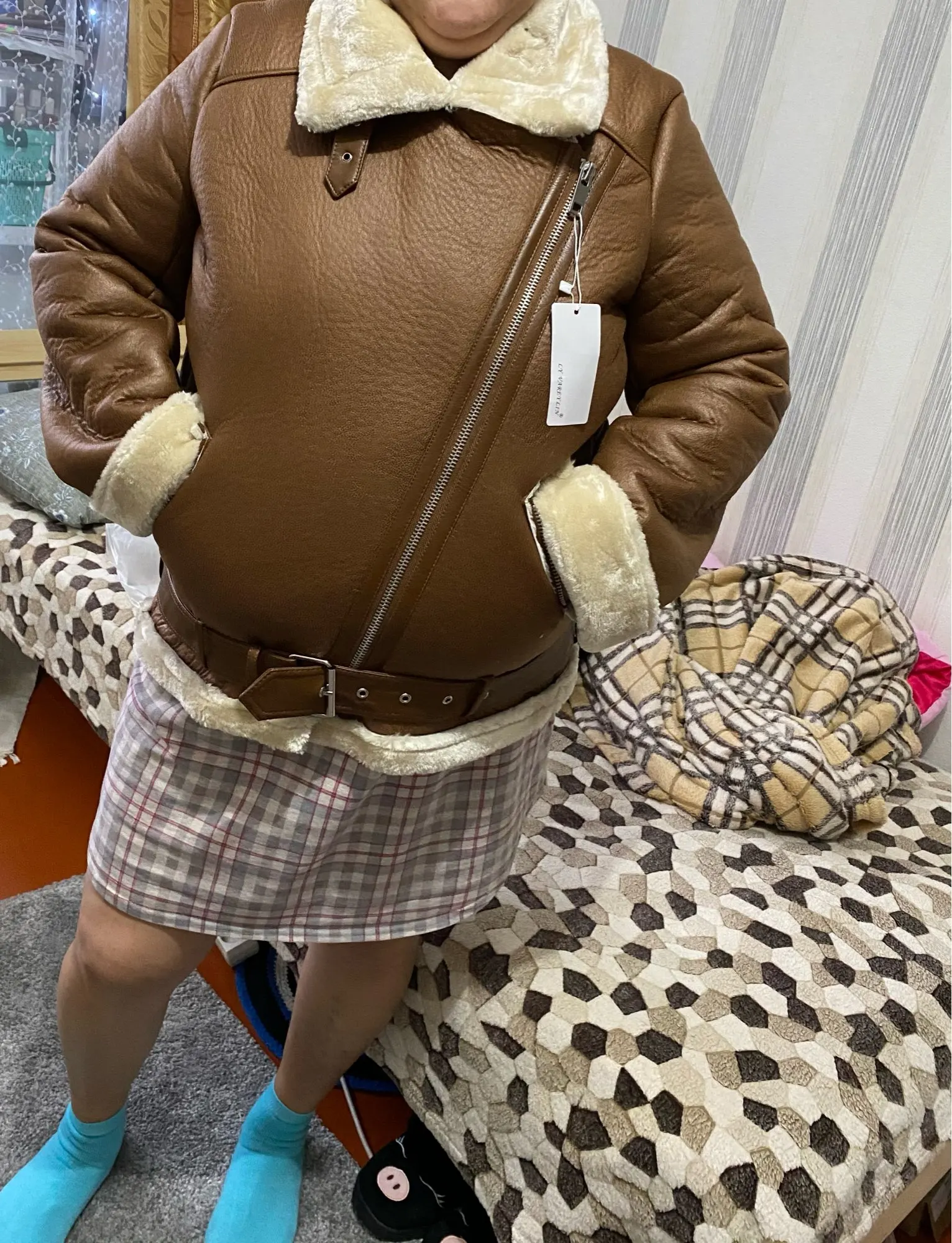 Ailegogo 2022 зимние пальто женские толстые искусственная кожа МЕХ ОВЧИНА пальто женская меховая кожаная куртка авиаторская куртка Casaco Feminino