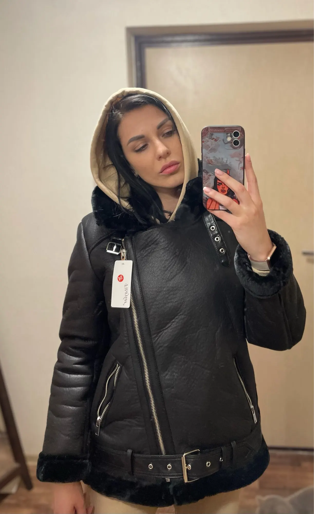 куртка свои деньги полностью окупает. из мягкой кожи по типу алькантары в машине) изнутри полностью плюш - рукава можно подогнуть, как вам нужно. на мой 42/44 рос.размер 88/70/96 полностью подошло. сидит отлично. у меня сильный изгиб в пояснице - обычно куртки, которые ниже пояса (а эта на мой рост 164 почти полностью закрывает попу), сбоку смотрятся пузырем, но не эта. немного лезет мех в местах срезов швов. думаю, это временное явление. куртка на мне сидит, мне кажется чуть плотнее, чем на модели, но не в обтяг. кому нужен оверсайз, можно на размер побольше взять, думаю. до РТ дошла за рекордные 8 дней, я ожидала быструю доставку, но не думала, что будет настолько экспресс. просто шикарно! я очень довольна