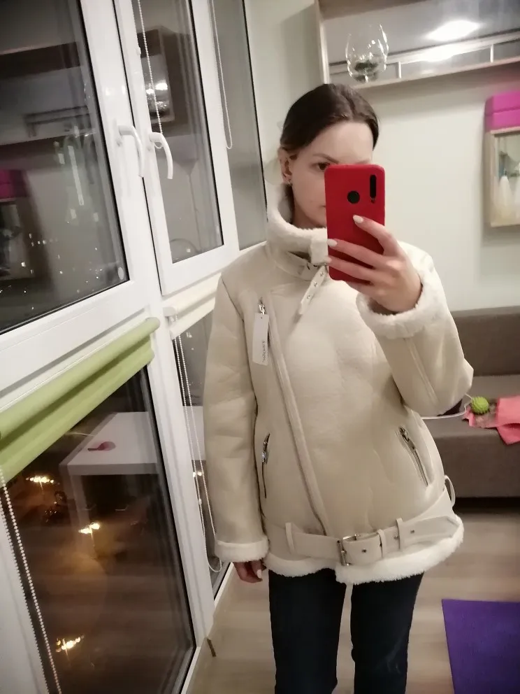 До Красноярска посылка дошла за 10 дней! Давно не встречала таких быстрых доставок) Что могу сказать: это одна из моих лучших покупок на Али. Очень переживала как сядет на меня и уже настроилась, что не понравится и придется либо назад отправлять, либо продавать. Но нет, села идеально, даже как был подвернут манжет при отправке. Ношу 40-42, рост 157 см. Оверсайз вот прям как надо, будто на меня шили)) Ремень стремненький - сопливый, сразу его убрала. Мех лез, но сразу пропылесосила все швы и прошлась роликом для чистки, после этого пару ворсинок всего осыпалось. Нравится, что она мягкая. До этого в магазине мерила из кож.зама - все какие-то дубовые и стоят колом. Эта же дубленочка смотрится куда дороже :) По температуре: умудрилась носить её в -18 с легким свитером - тепло) Всем рекомендую к покупке! :)