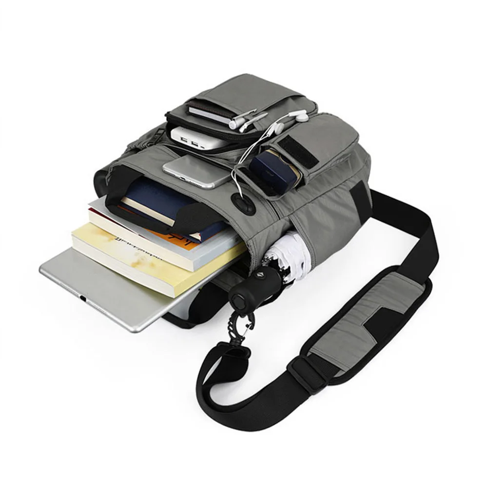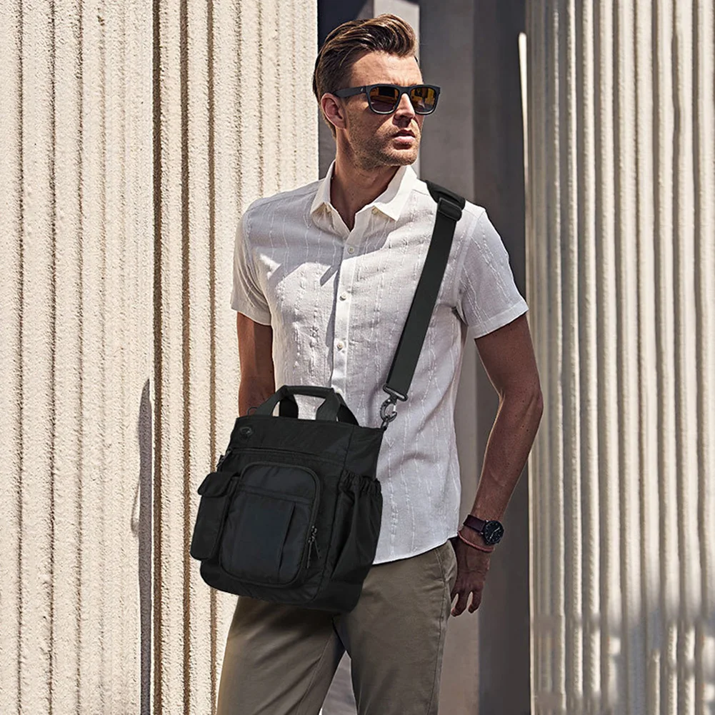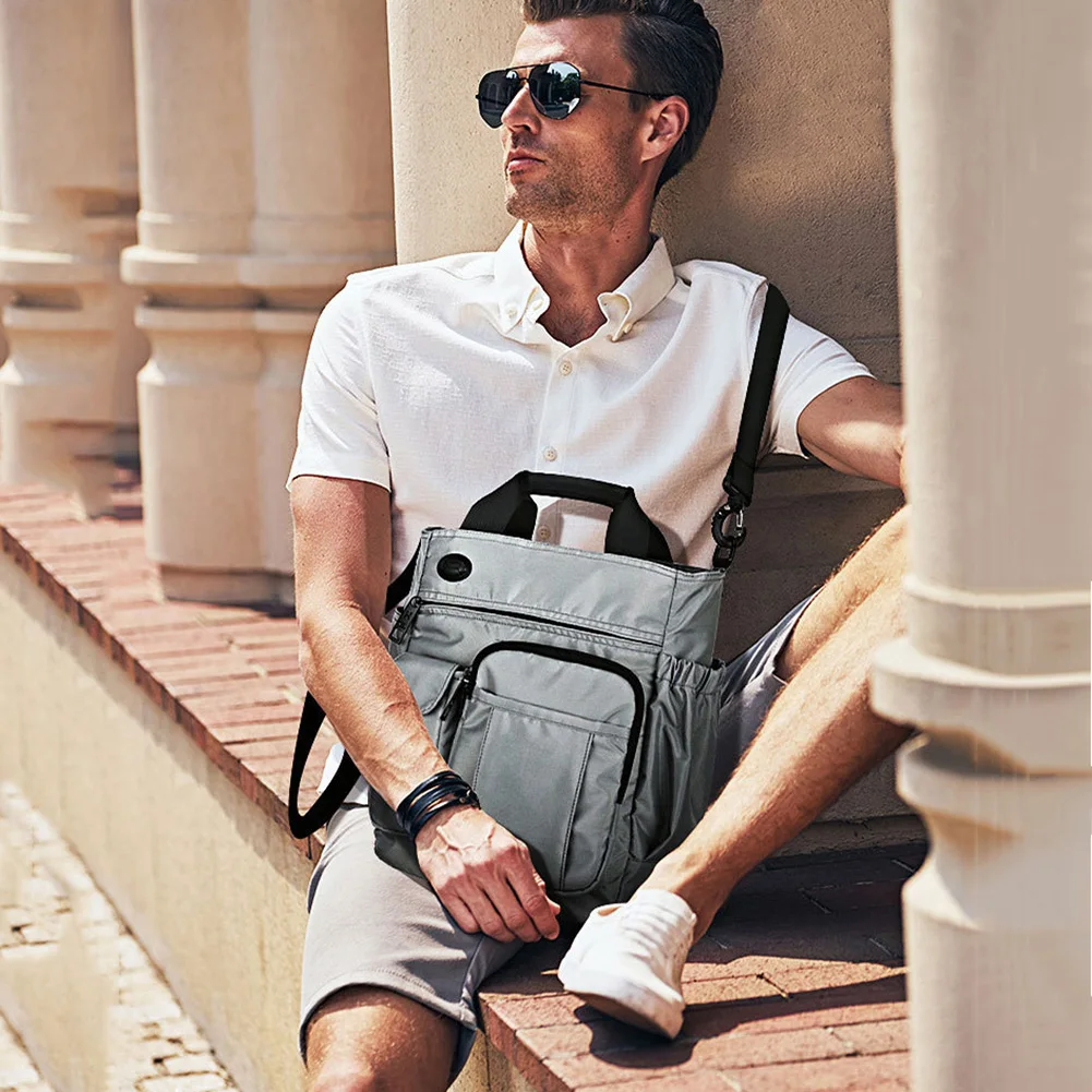 Деловой портфель на ремне для мужчин, сумка-тоут с несколькими молниями для ноутбука через плечо, портфель кросс-боди с защитой от кражи для мужчин, школьный портфель