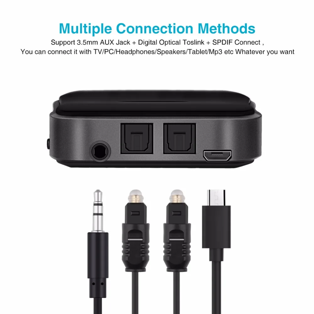1 адаптер передатчика/приемника Bluetooth1 x зарядный кабель Micro USB1 x аудиокабель 3,5 мм1 линия лотоса1 x Цифровой оптоволоконный кабель1 х Руководство пользователя