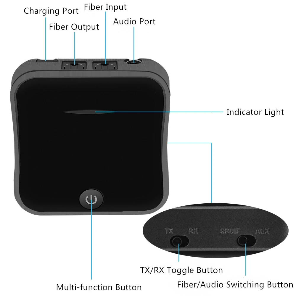 1. Версия Bluetooth: V5.0, классический2. Вспомогательное соглашение: A2DP AVRCP3. Поддержка двойного потока (режим TX): поддержка (один передатчик подключает одновременно две динамики Bluetooth или наушники)4. Время использования статуса передатчика (AUX): около 18 часов5. Время использования состояния передатчика (SPDIF): около 18 часов6. Режим кодека: кодек7. Поддержка Bluetooth-гарнитуры, Bluetooth-аудио, Bluetooth-приемника и другого оборудованияКлюч: 0000 1111 1234 88888. Время зарядки: около 3 часов9. Дальность использования: до 10 метров10. Поддержка многоточечного подключения (режим RX): поддержка подключения двух мобильных телефонов11. Время использования статуса приемника (AUX): около 20 часов12. Время использования статуса приемника (SPDIF): около 20 часов13. Тип аккумулятора: 3,7 в, 600 мАч литий-ионный полимерный аккумулятор14. Рабочая температура: -10-55 ° C