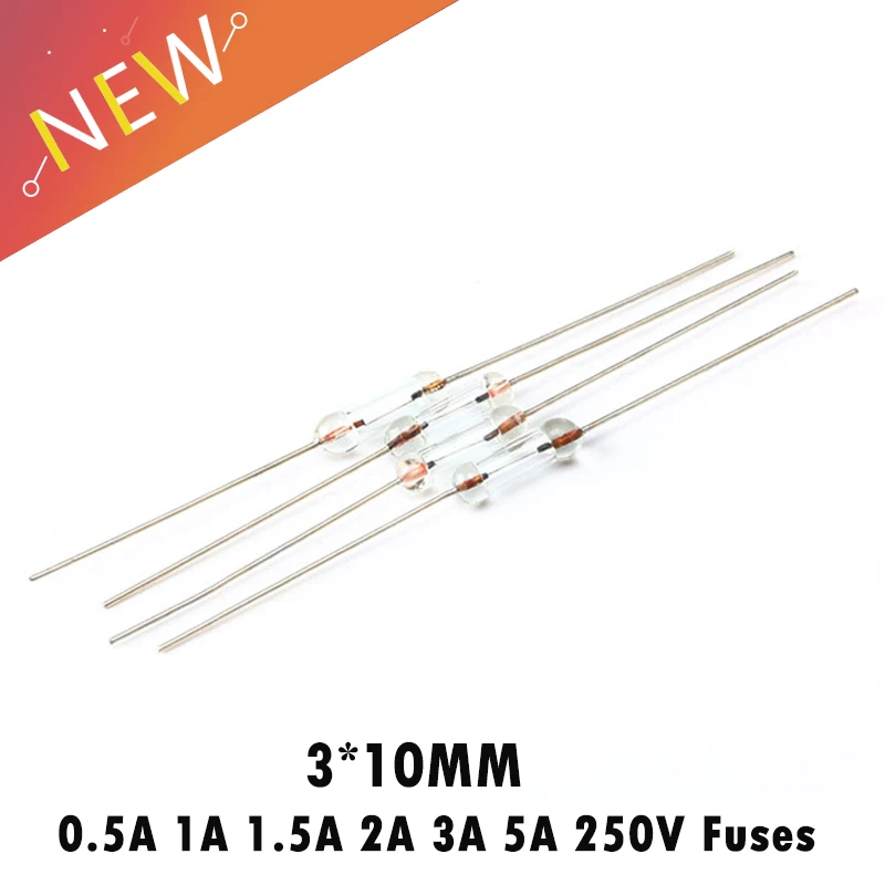 100 шт.лот 3*10 мм 250 в осевой Быстрый стеклянный предохранитель с свинцовым проводом 0.5A1A1.5A2A3A5A 250 В предохранители экологически чистые 3X10