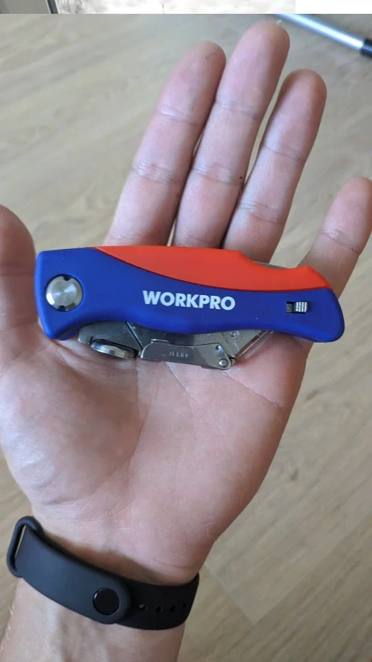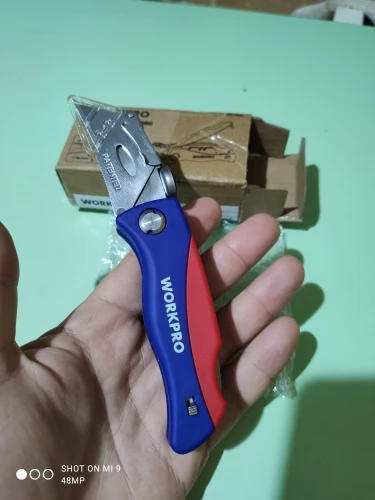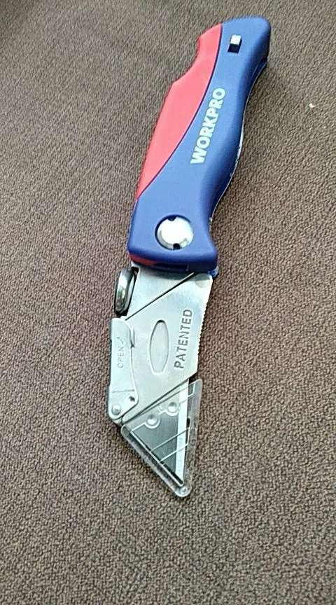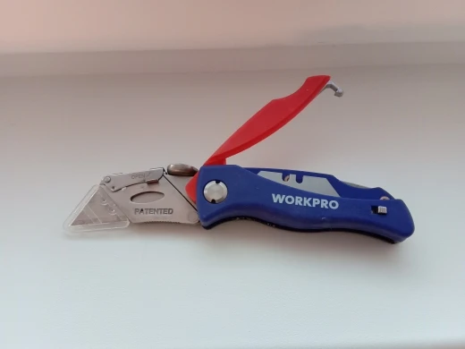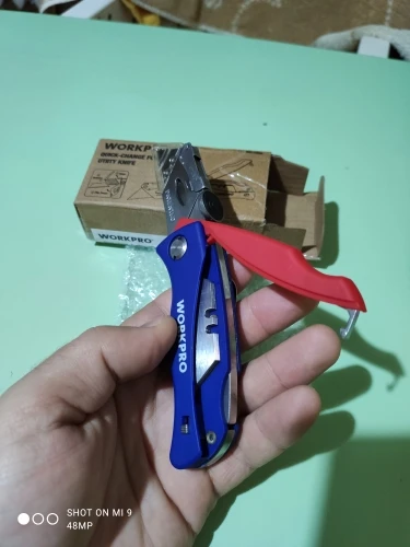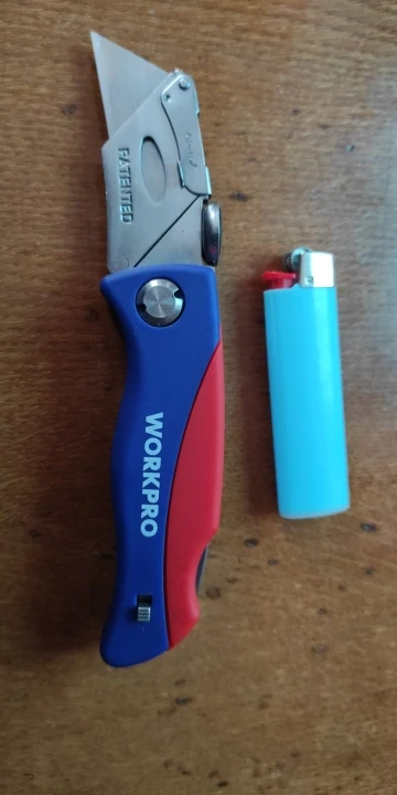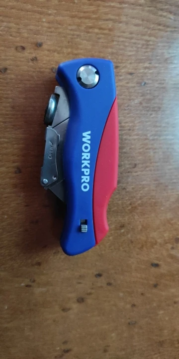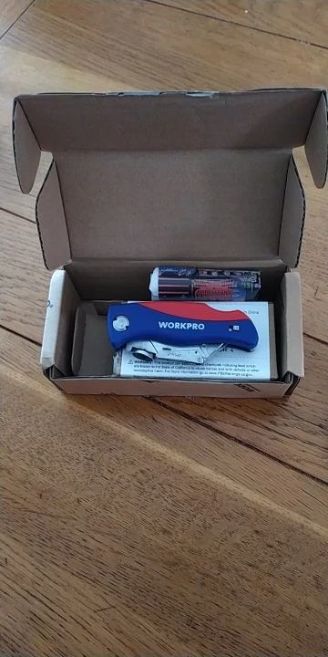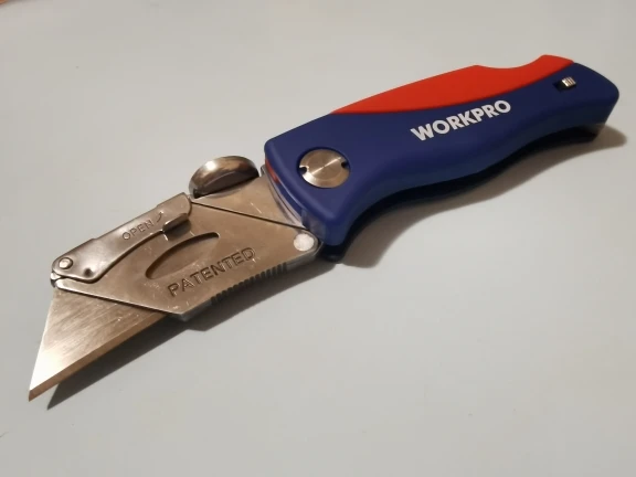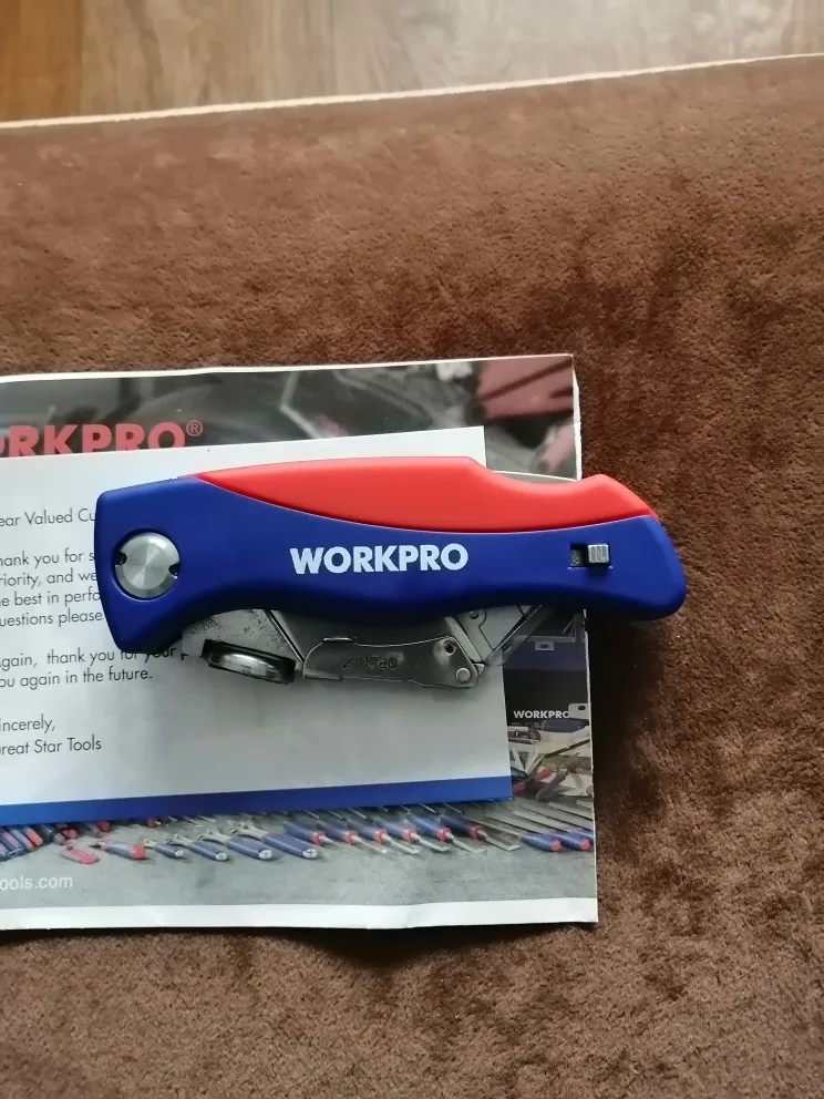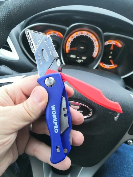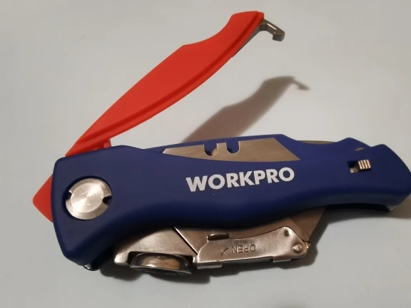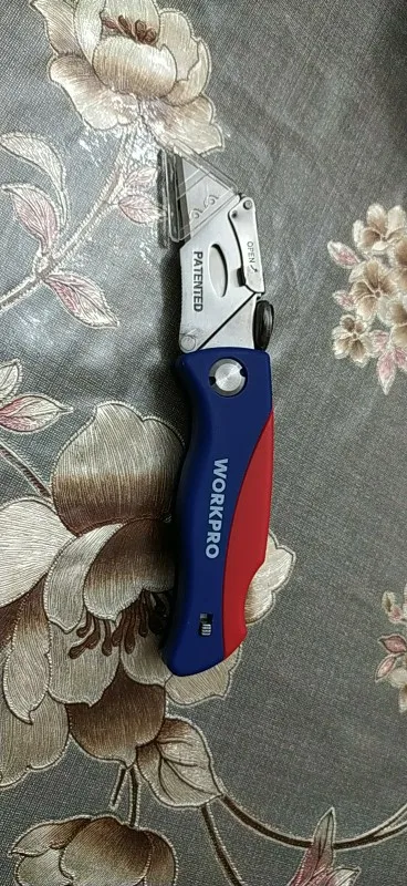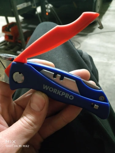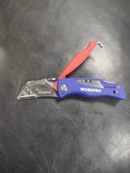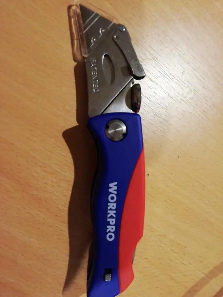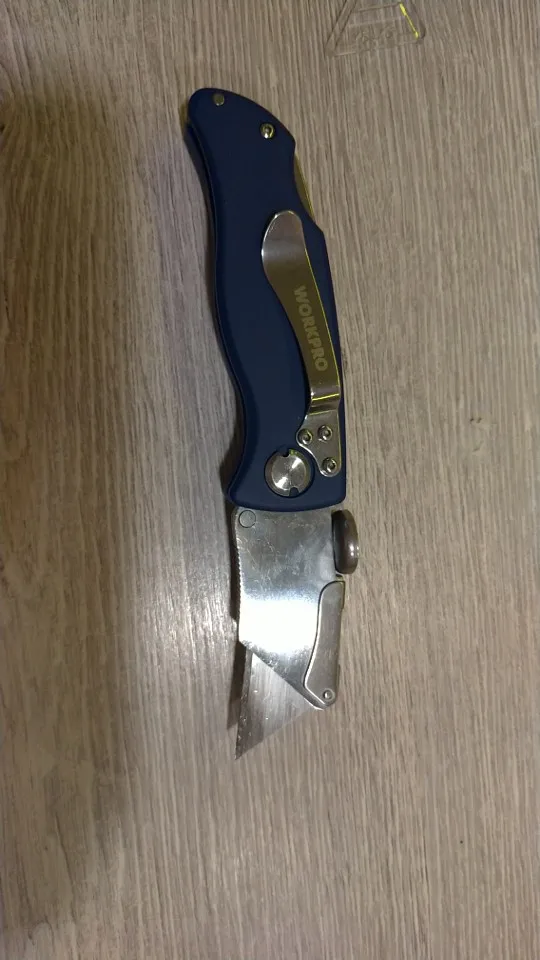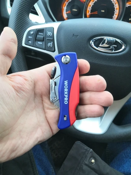 продавца рекомендую, workpro на высоте , как всегда. нож четкий, фиксатор работает исправно, есть место для большого пальца-упор. берите не пожалеете, в магазине я такого ее встретил, качество на высоте, доставка в Махачкалу быстрая, почта России рулит))). есть специальная насадка на лезвие, что-бы случайно не пораниться, в корпусе 5 запасных лезвий, надолго хватит!