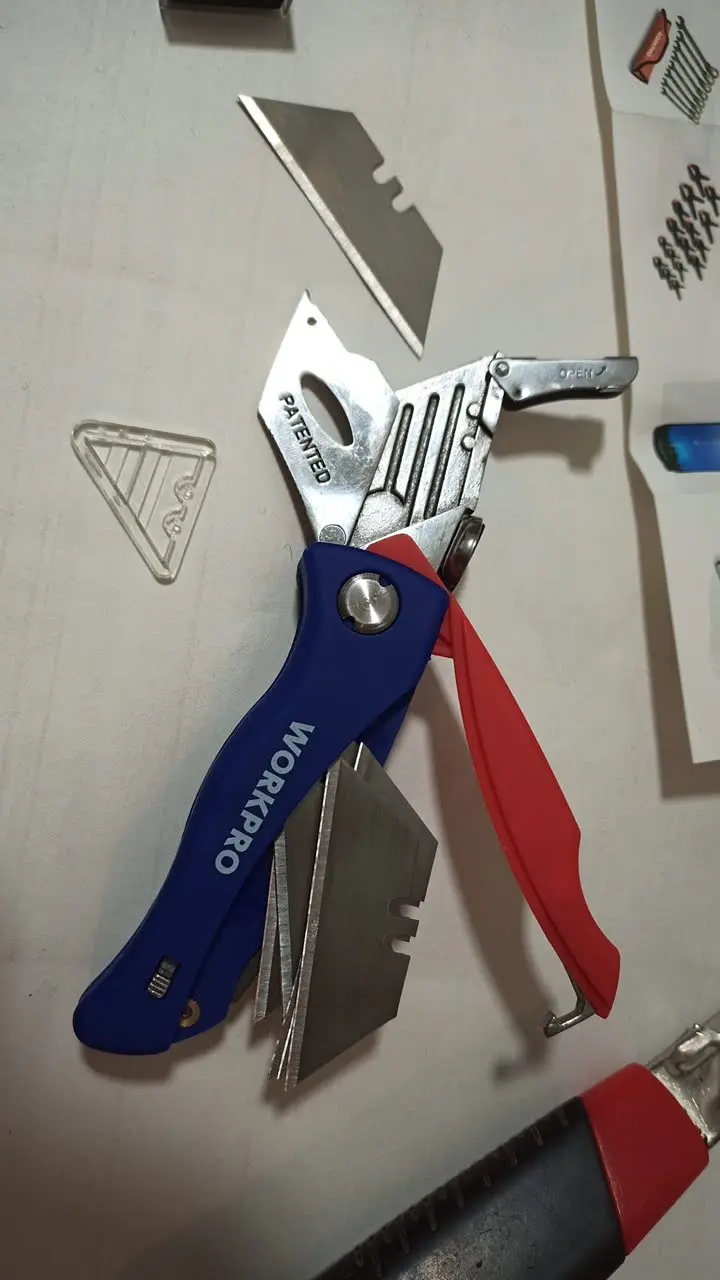 Складной нож WORKPRO, универсальный резец для труб с 5 лезвиями в рукоятке