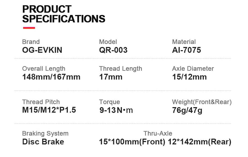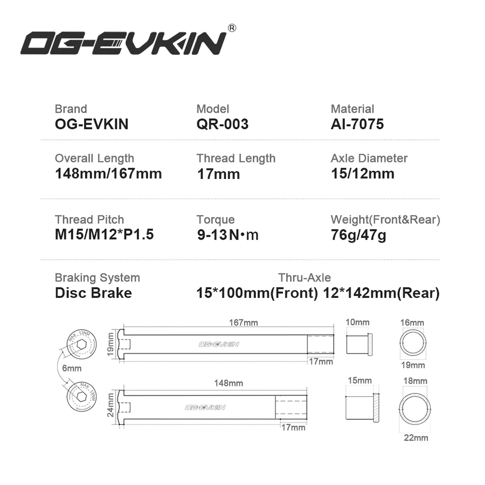 OG-EVKIN QR003 углеродный дисковый тормоз для дорожного велосипеда, быстросъемный передний 15x100 мм задний 12x142 мм для горного дорожного велосипеда M15M12 * P1.5 шампуры