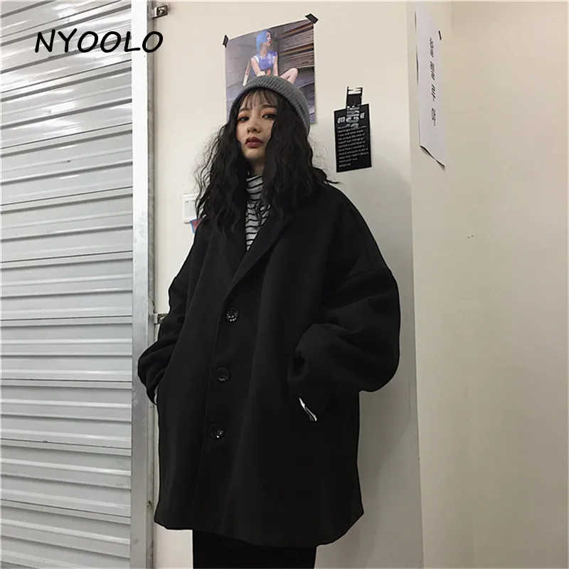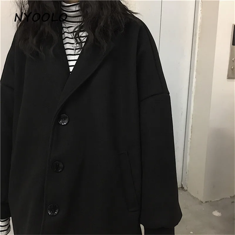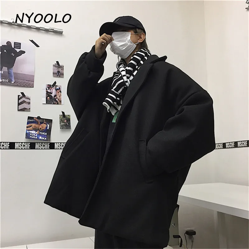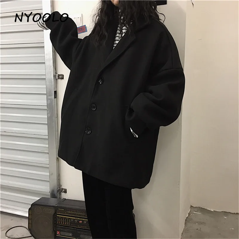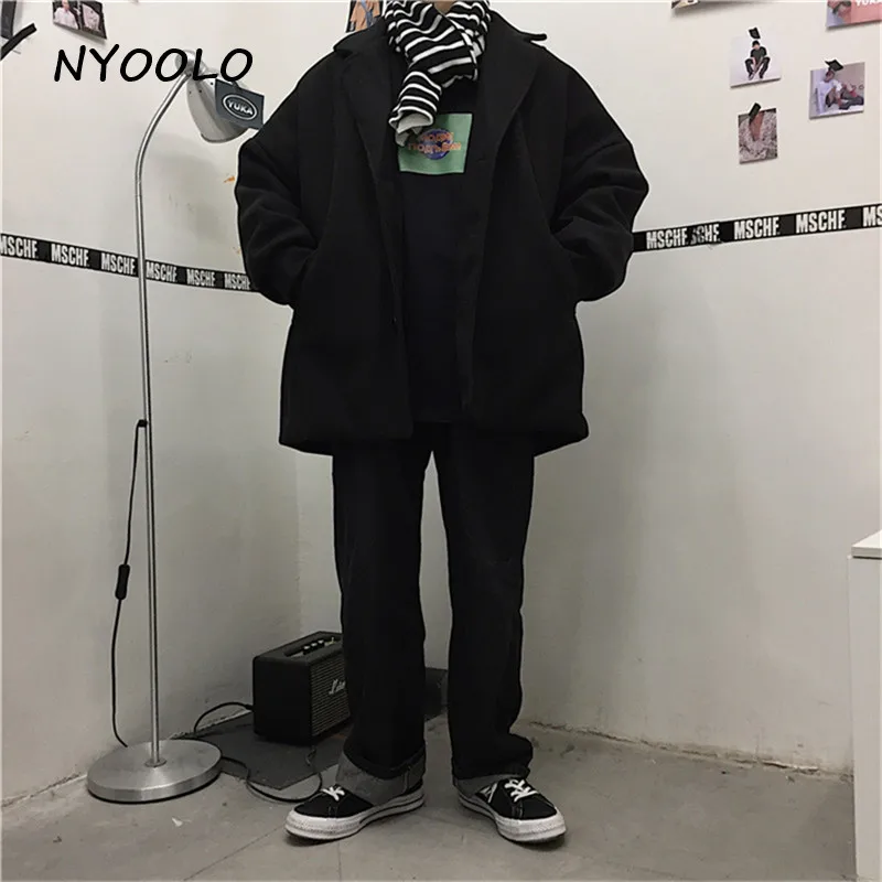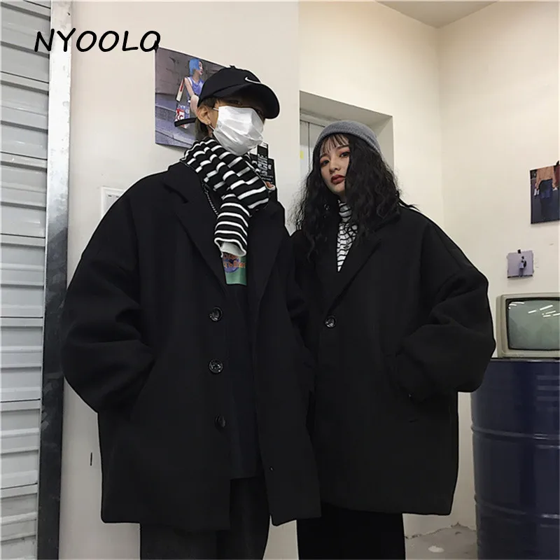 Куртка Шерстяная МужскаяЖенская, с карманами, однобортная, теплая, свободная, Осень-зима