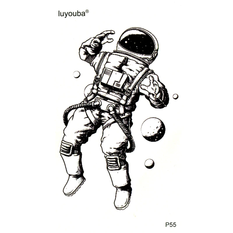 Временная тату-наклейка космонавт в космосе, тату-наклейка, тату Харадзюку из хны, тату на рукавах, временная тату для женщин, вода