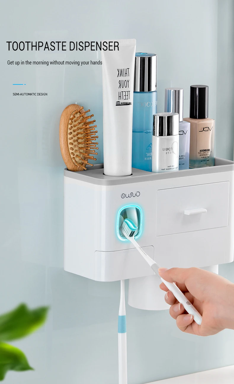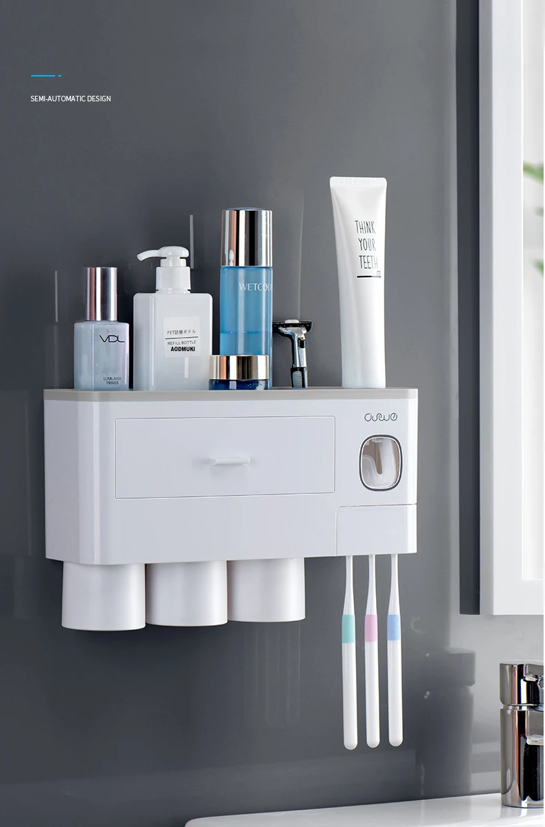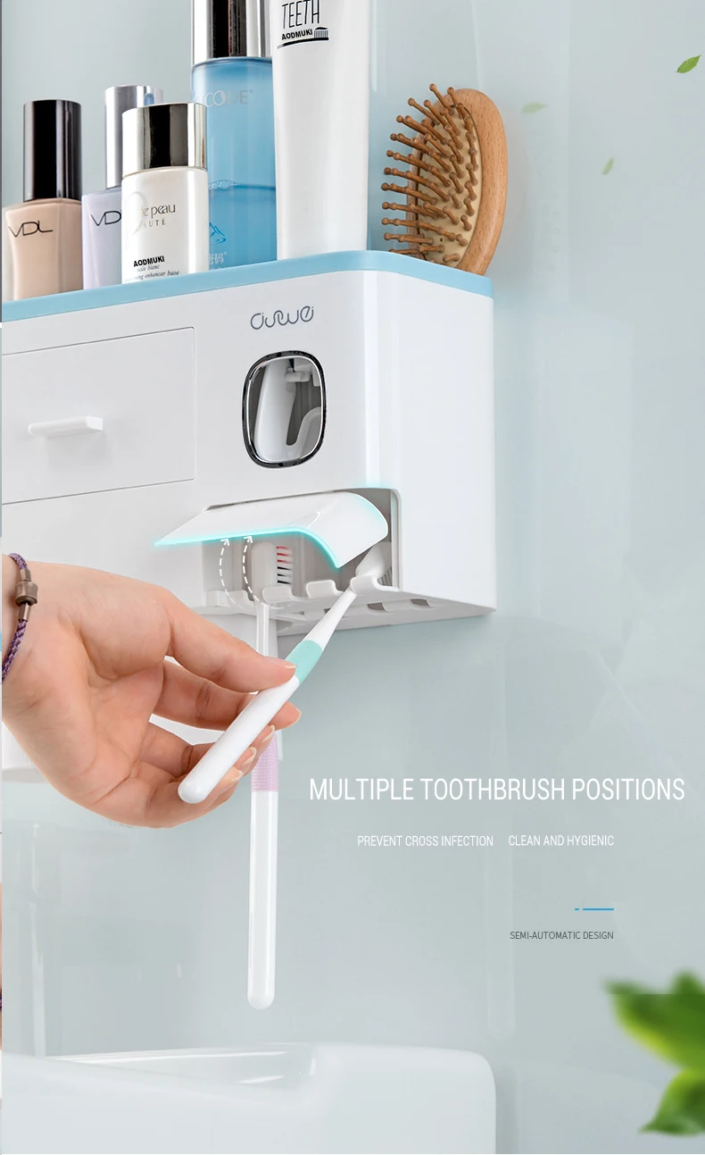 Новый держатель для зубных щеток Автоматический Диспенсер для зубной пасты с чашкой настенный держатель для хранения туалетных принадлежностей набор аксессуаров для ванной комнаты