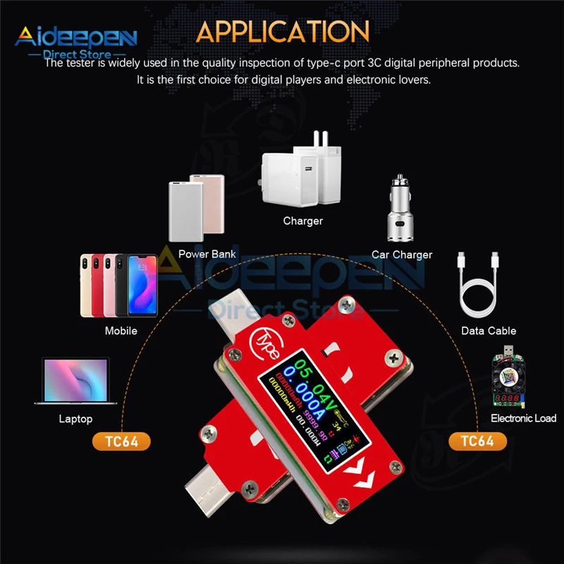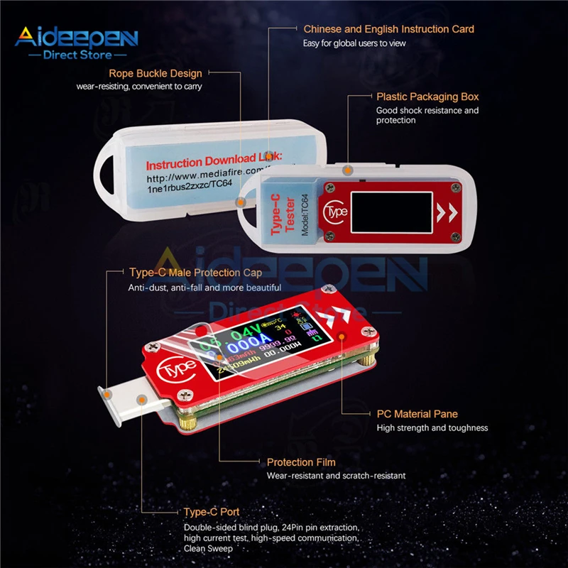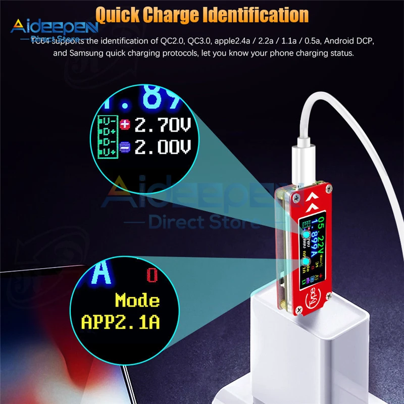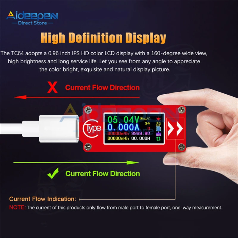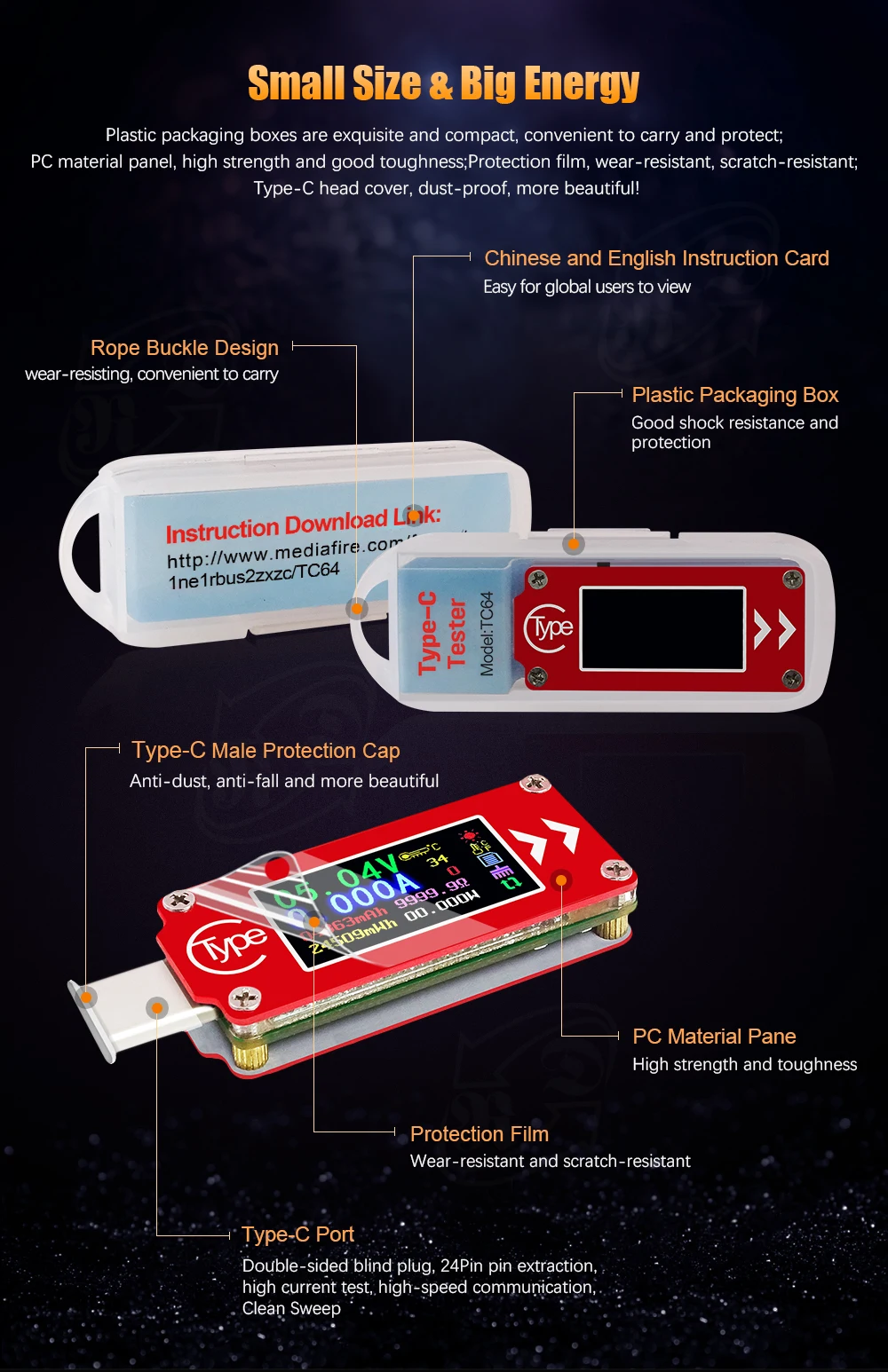 TC64 Type-C ЖК-цветной экран USB Вольтметр Амперметр Многофункциональный тестер Инструмент детектор напряжения измеритель тока зарядка монитор