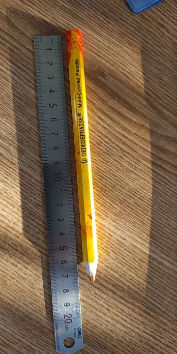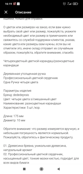 в описании заявлено пять карандашей, прислали один!!!Заказывала когда еще не было отзывов, поэтому будьте внимательны, в заказе придет один карандаш, рандомного цвета. Мне достался желто-красный, карандаш толстый диаметр около 1см. Даже с учетом скидки Али, выходит дорого, потому что доставка платная, тут больше не закажу, можно найти набор дешевле.