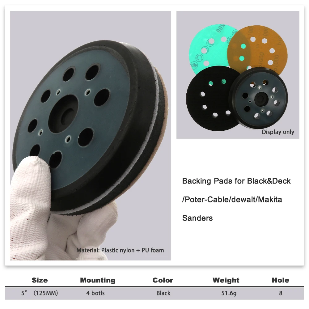 5 дюймов, 125 мм, 8 отверстий, задняя шлифовальная накладка 34 дюйм...
