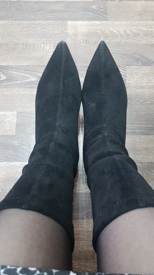 Мне подошли идеально: по размеру комфортно, в голени - не давит. материал - искусственный, если бы был натуральный - было бы совсем круто. Единственный минус - носы немного разные по форме. С продавцом не общалась, товар пришел быстро.