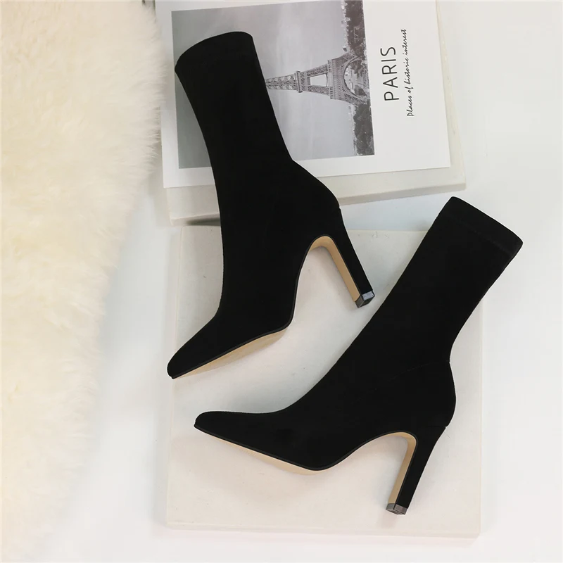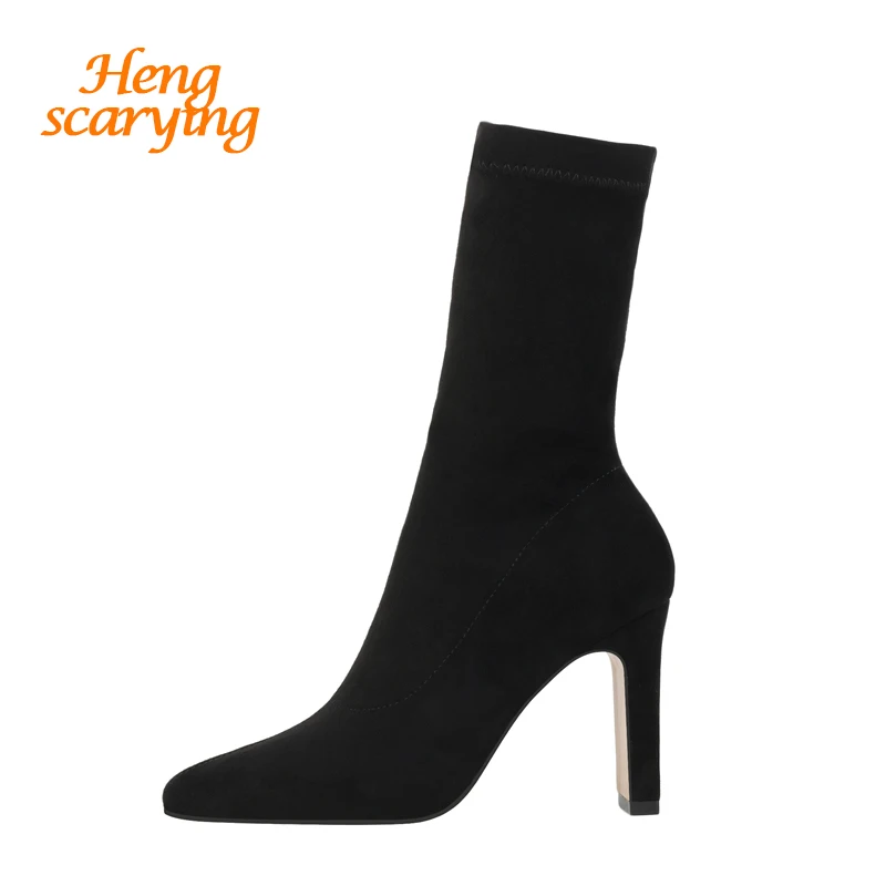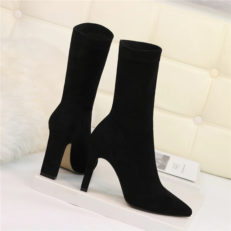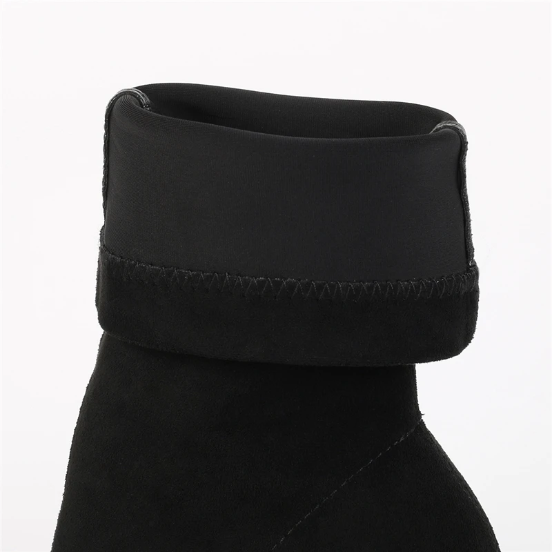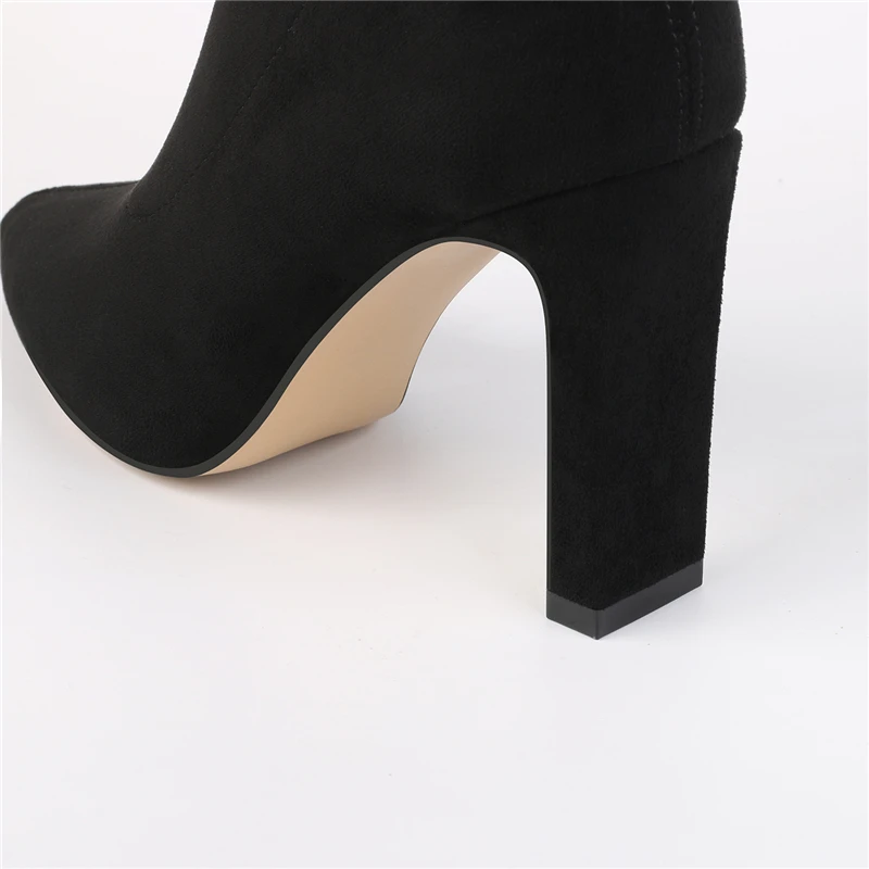 2020, новинка, Зимние удобные женские ботинки из ткани на высоких квадратных каблуках Зимние Замшевые ботильоны на платформе высокого качества; Модные ботильоны с острым носком осенне тянущаяся обувь большой Размеры