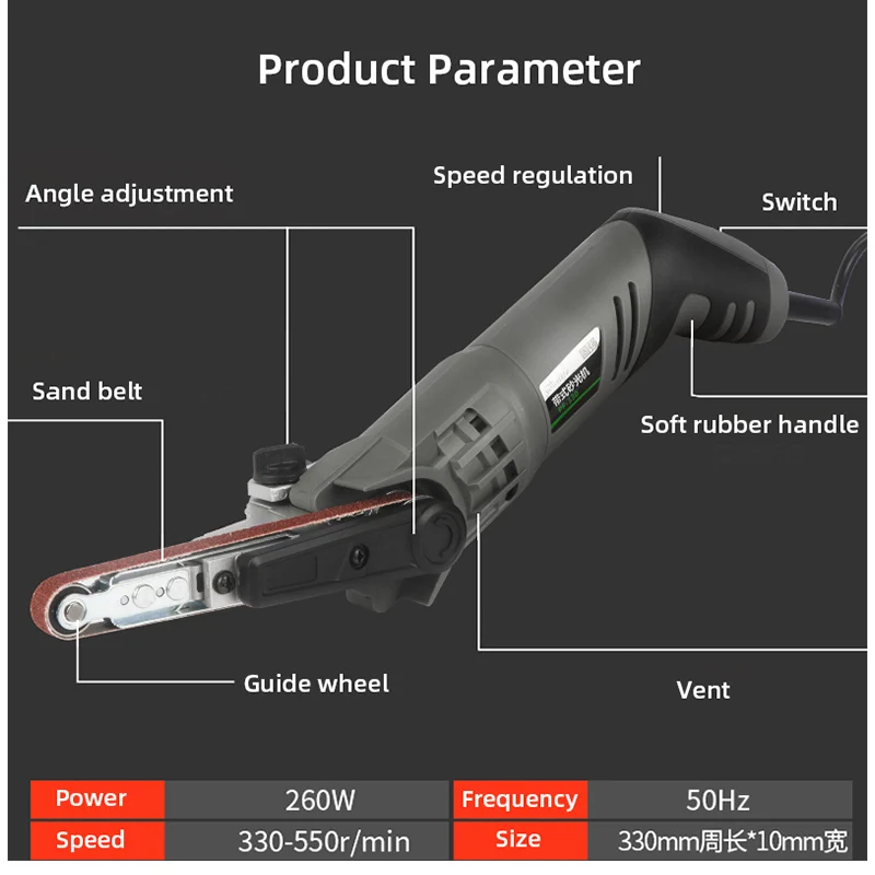 Электрический мини-шлифовальный станок ленточная шлифовальная машина, 260 Вт, 6 скоростей, 330x10 мм с 10 абразивными лентами