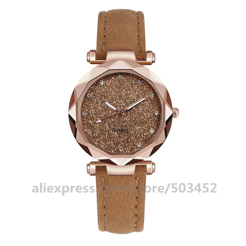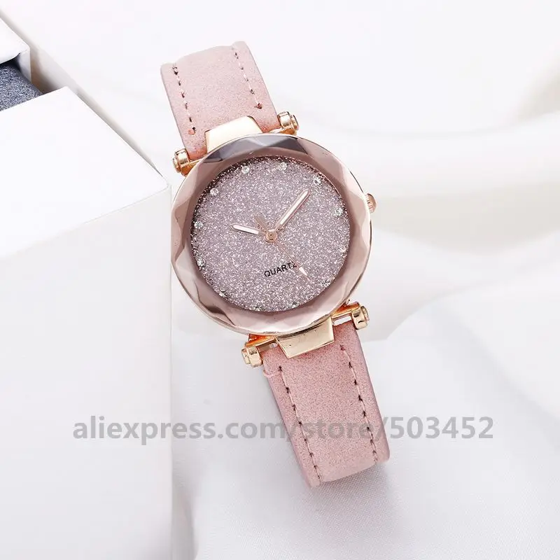 100 шт.лот простые женские часы Романтические модные наручные часы дизайнерские Простые повседневные женские часы с звёздным небом Montre Femme