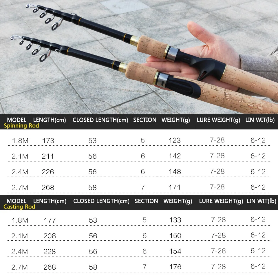 Акция! Телескопическая рыболовная удочка с деревянной рукоятью, спиннинг 1,8 м 2,1 М 2,4 М 2,7 м, класс m, твердое углеродное волокно, для путешествий