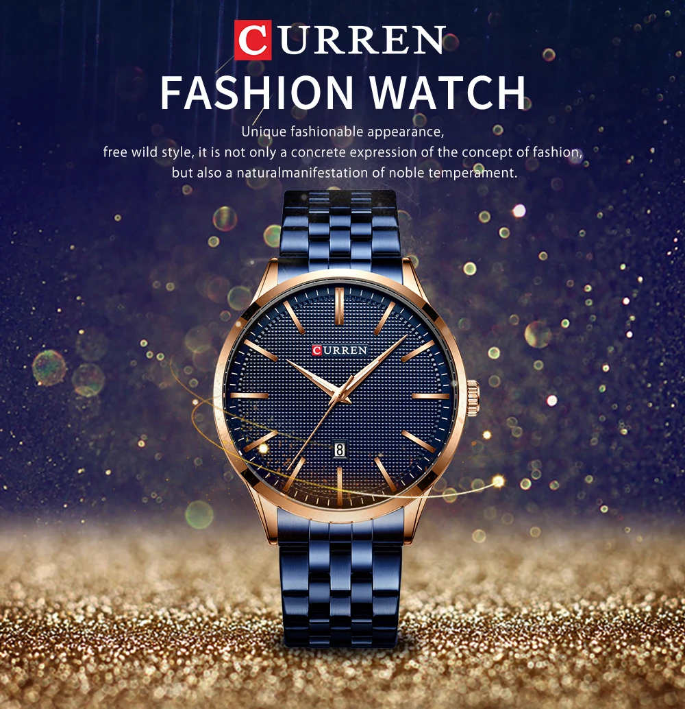 Новые часы CURREN, мужские часы топового бренда, модные спортивные наручные часы с автоматической датой, часы из нержавеющей стали, мужские повседневные часы в стиле Reloj