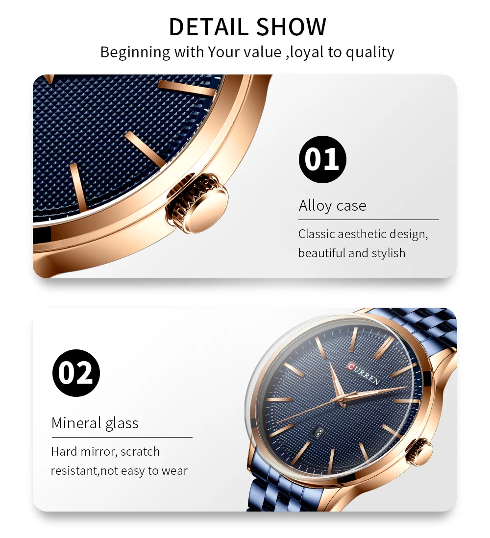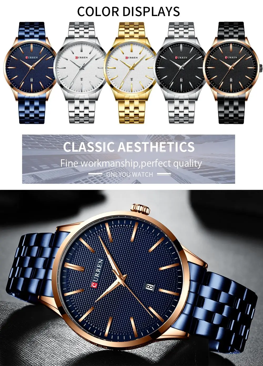 Классические мужские часы CURREN со стальным ремешком, деловые флаг...