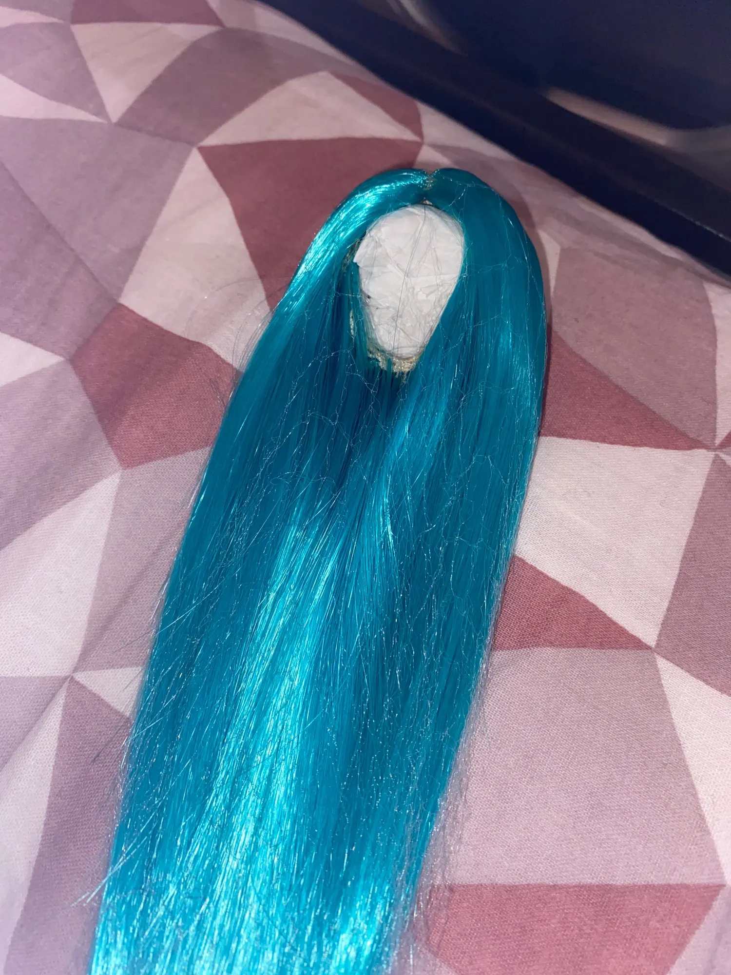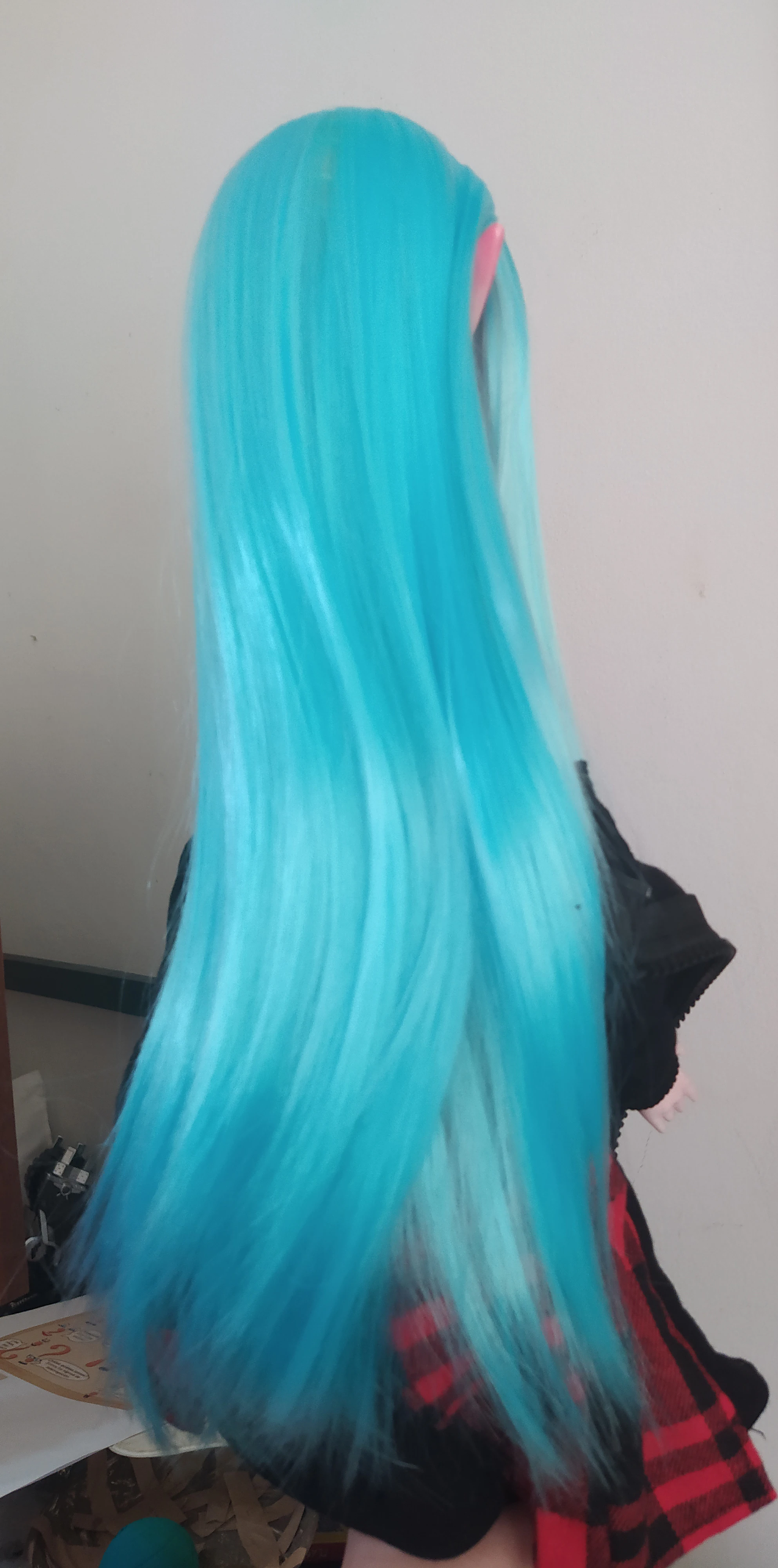 Парик прибыл примерно через 2 недели, что является фантастическим. На картинке вы можете увидеть его намного темнее, на самом деле это действительно зеленовато, темно-синий/зеленый. Это красивый парик на самом деле, волосы действительно мягкие и поставляются с этой защитной сеткой. Это действительно достойно, особенно за цену.