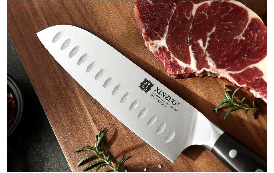 XINZUO 7-дюймовый нож сантоку, кухонные ножи из нержавеющей стали марки Din 1,4116, нож шеф-повара для нарезки мясника с черной ручкой