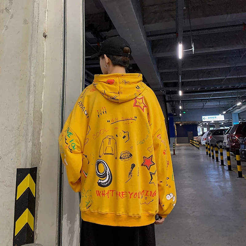 Мужская толстовка с капюшоном в стиле хип-хоп Harajuku, Японская уличная одежда, желтая Толстовка большого размера