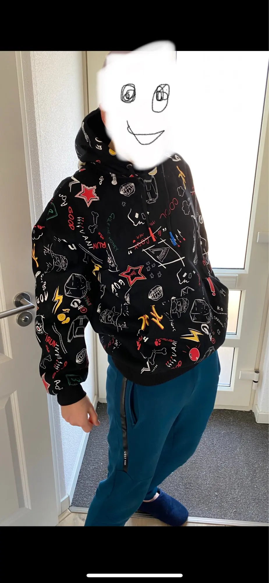 Очень качественное худи. Даже не ожидала такое крутое получить. Очень тёплое и размер идеальный, На 190 см и 90 см. Пришло за 2 недели. Однозначно рекомендую. Спасибо продавцу. 10 звёзд