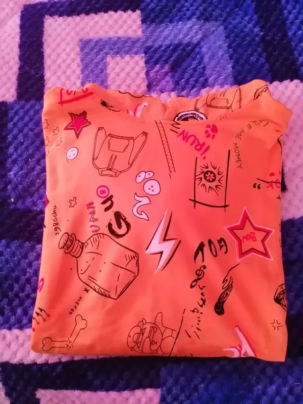Это действительно здорово. Я хотел иметь его больше, чем обычно, поэтому я купил размер XL. У меня обычно есть размер L (из-за большого бюста), и у меня 163 см роста Ач... Доставка была очень быстрой! Он должен был быть доставлен 5-го декабря, и я получил его 3-го декабря✨