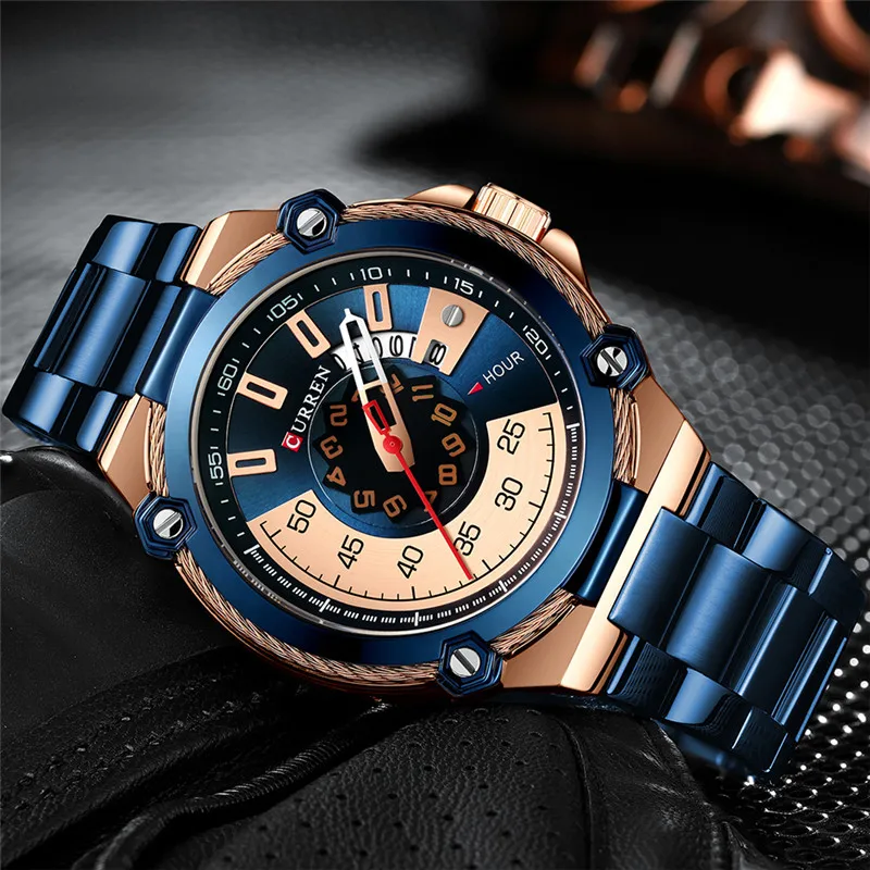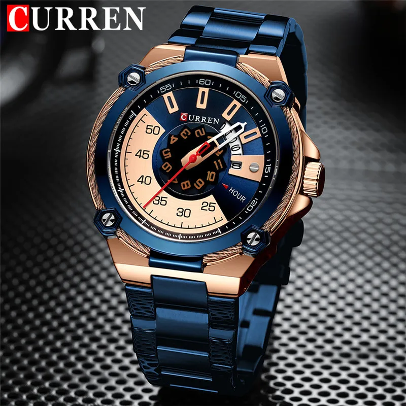CURREN спортивные мужские часы лучший бренд Роскошные военные деловые модные повседневные мужские часы из нержавеющей стали Кварцевые Мужские наручные часы 8345