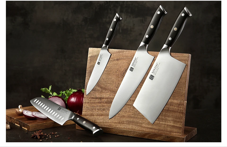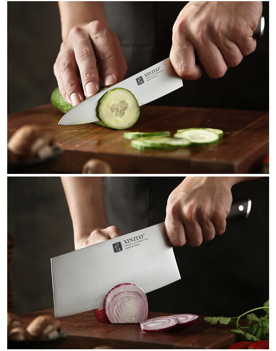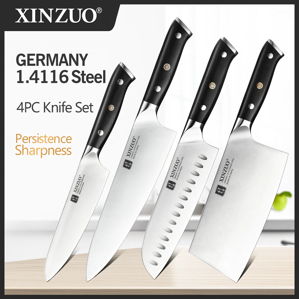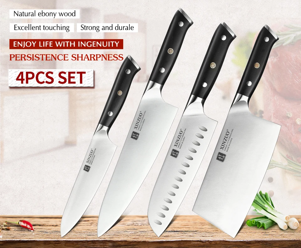 Набор кухонных ножей XINZUO из нержавеющей стали, комплект из 4 предметов, шеф-повар, Мясницкий резак, ножи сантоку в японском стиле, ручка из черного дерева