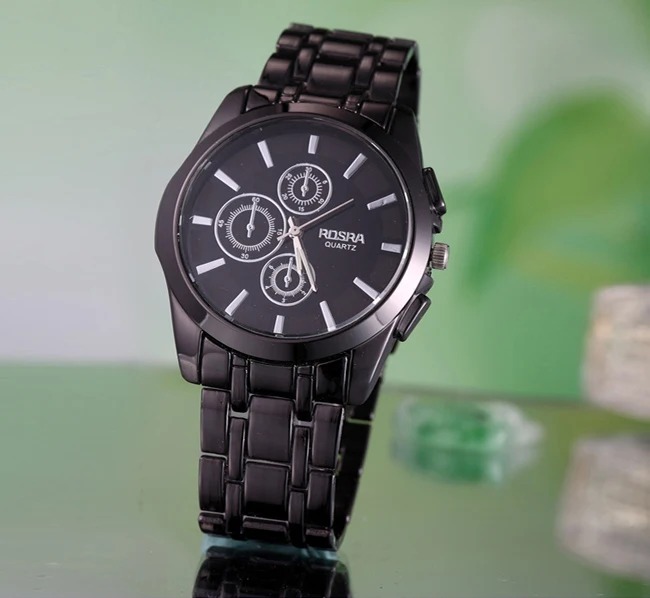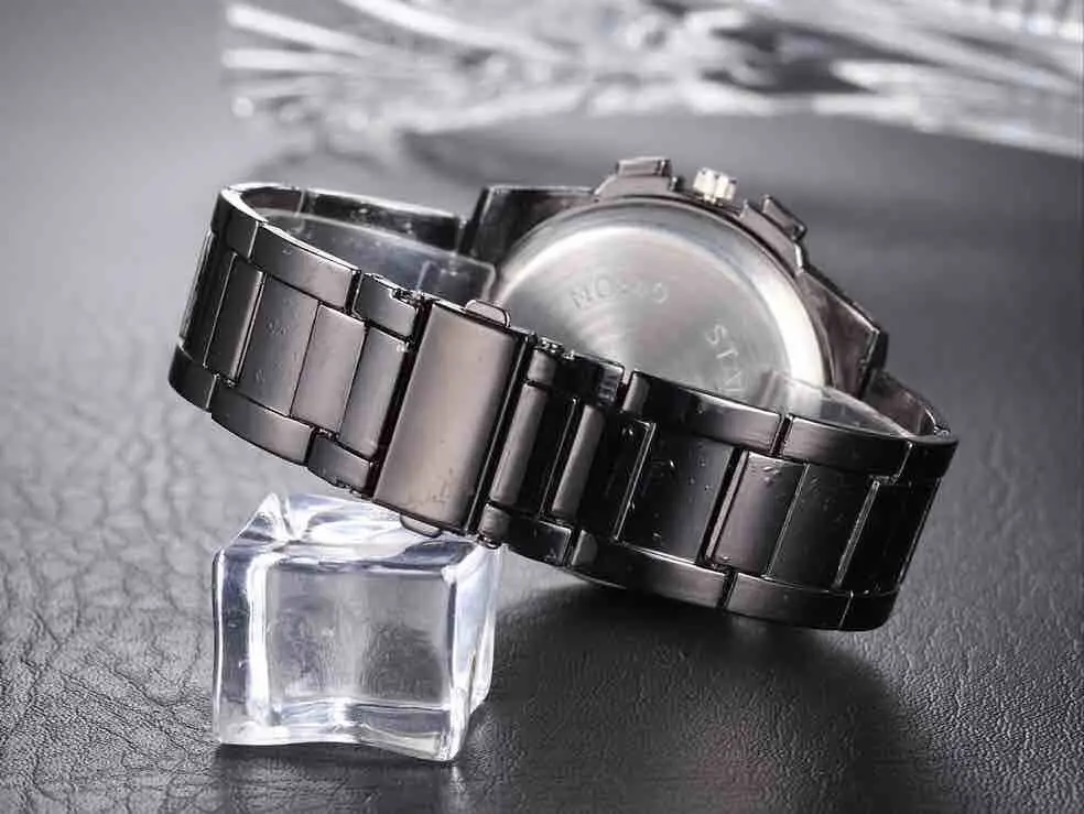 Часы наручные мужские из нержавеющей стали, Спортивные кварцевые, черные