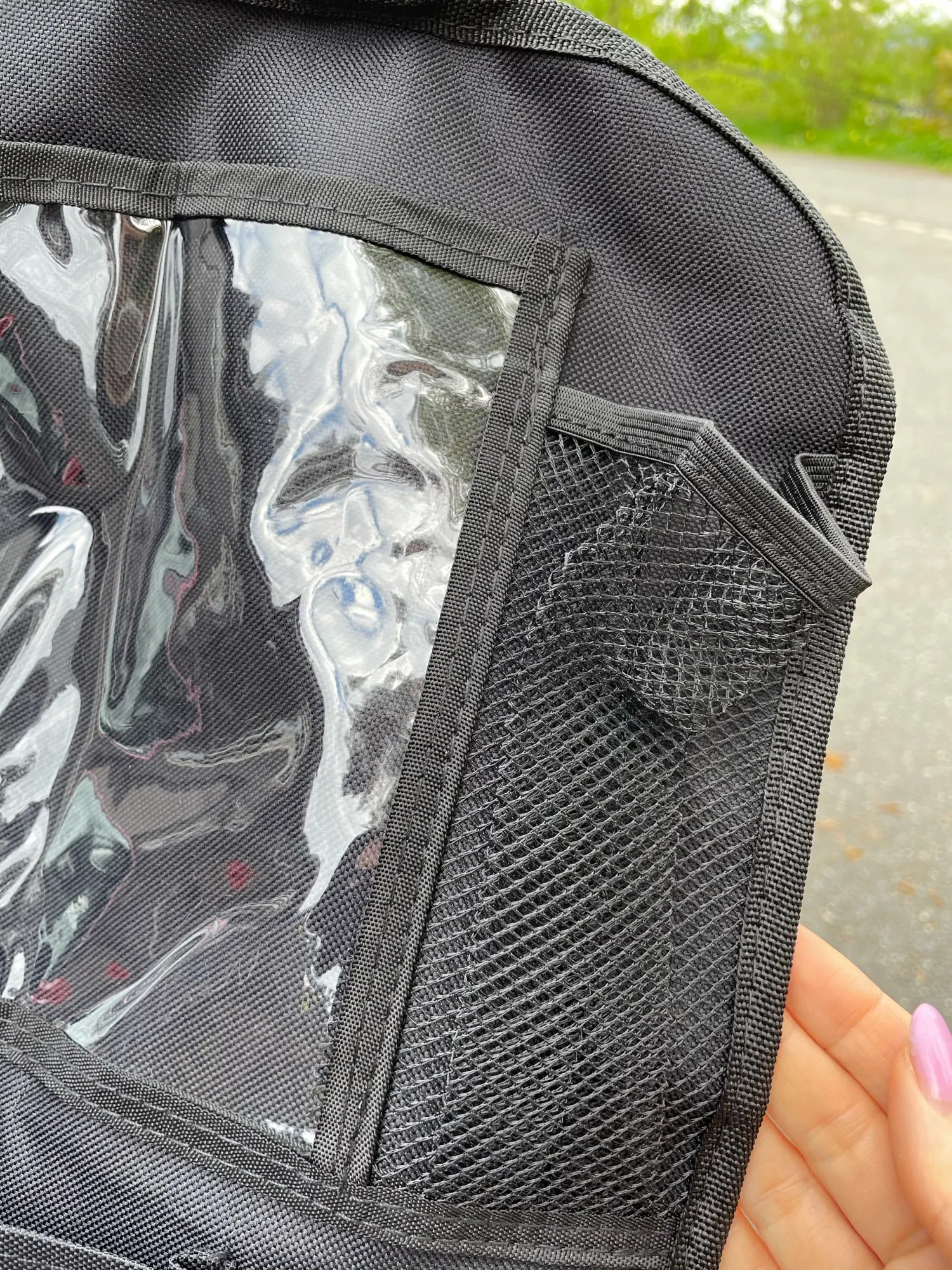 Органайзер имеет хорошее качество и размер. Идеально подходит и очень полезен. Черный цвет не самый красивый, но подходит для салона автомобиля.