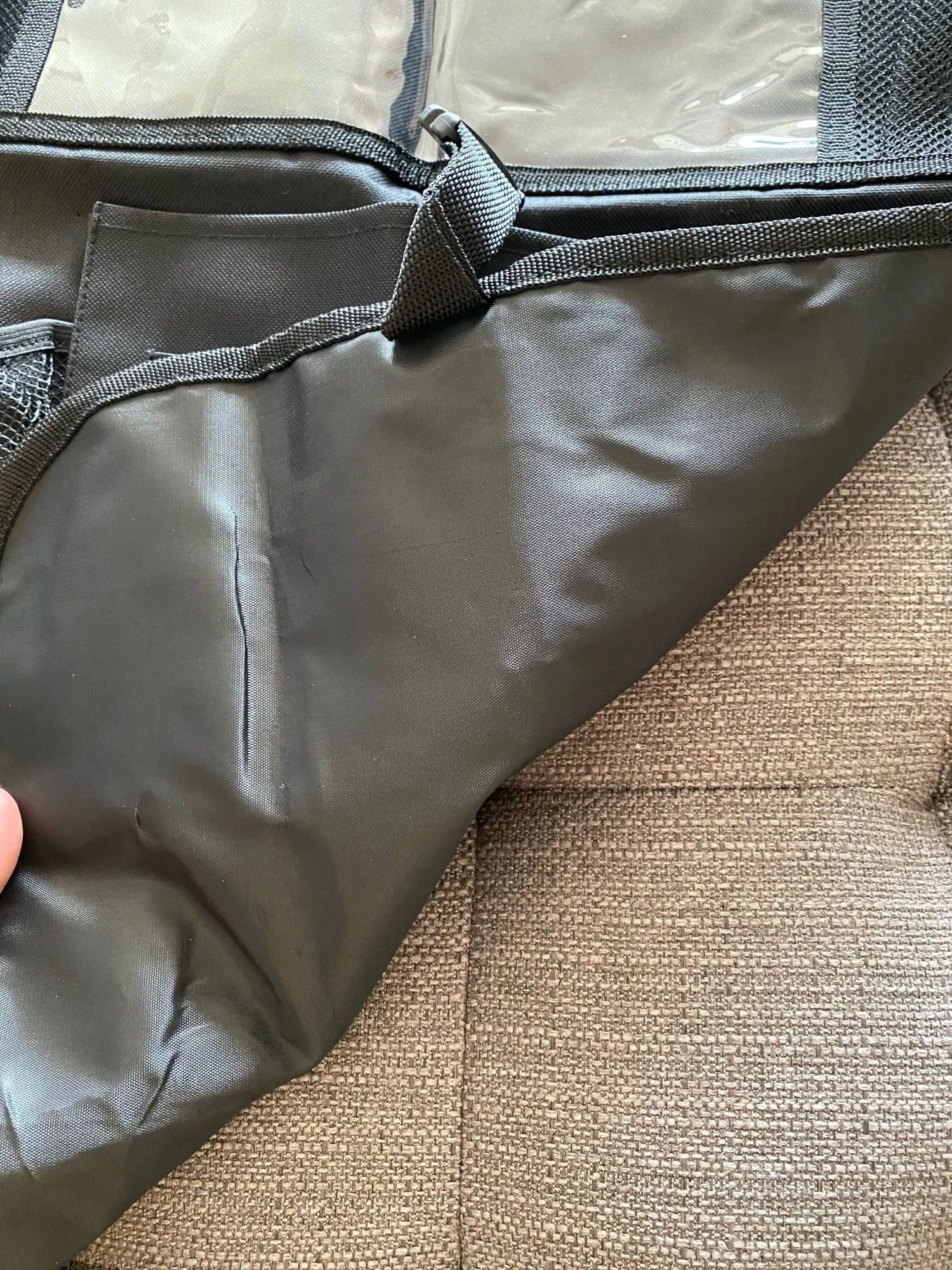 Tal como aparece en la foto. Tiene multiples compartimentos para poner botellas, pañuelos, tablets, móvil, etc. El vendedor respondio rapidamente cuando hubo un problema con el envio