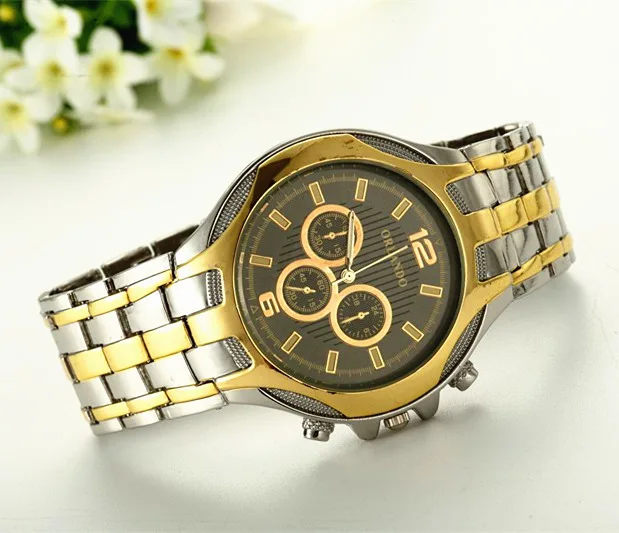 Часы наручные Orlando мужские золотистые, брендовые Роскошные модные деловые, из нержавеющей стали