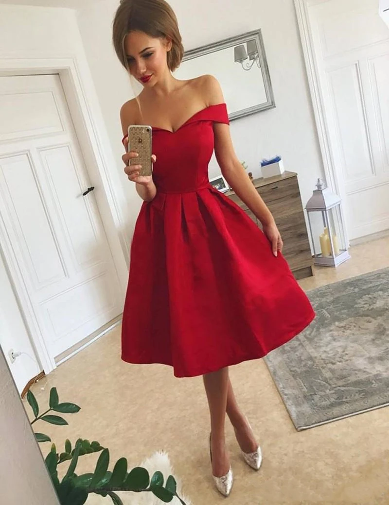 Пикантное красное вечернее платье Verngo с открытыми плечами, ТРАПЕ...