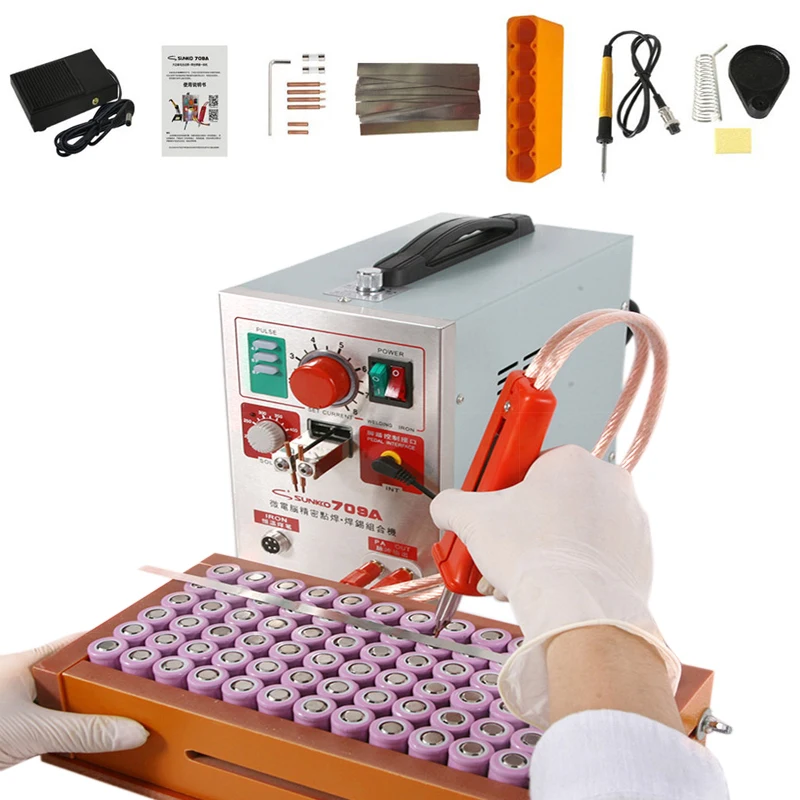 Точечная сварка аккумулятора SUNKKO 709A, сварочные аппараты кВт, высокая мощность, импульсный, для литиевой батареи 18650, с ручкой для сварки 70B