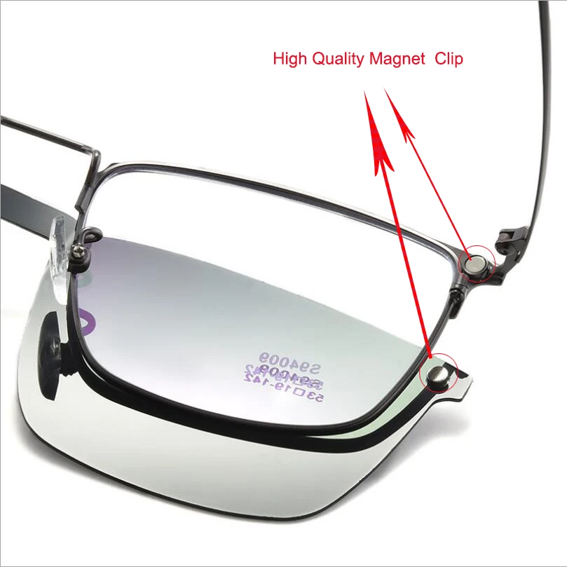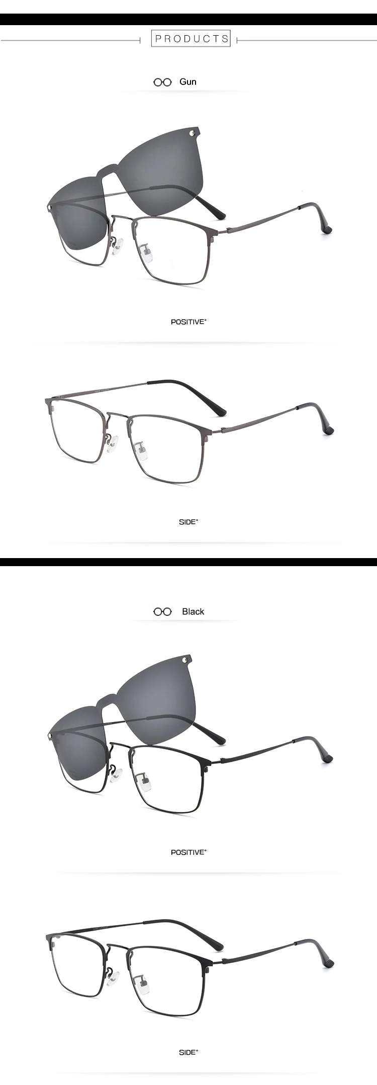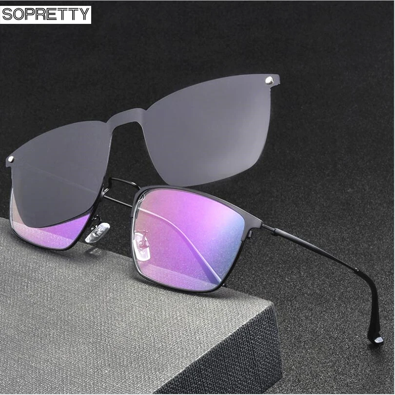 Мужские оправы для очков близорукости из титанового сплава, интегрированные магнитные клипсы, поляризационные солнцезащитные очки, металлические очки по рецепту