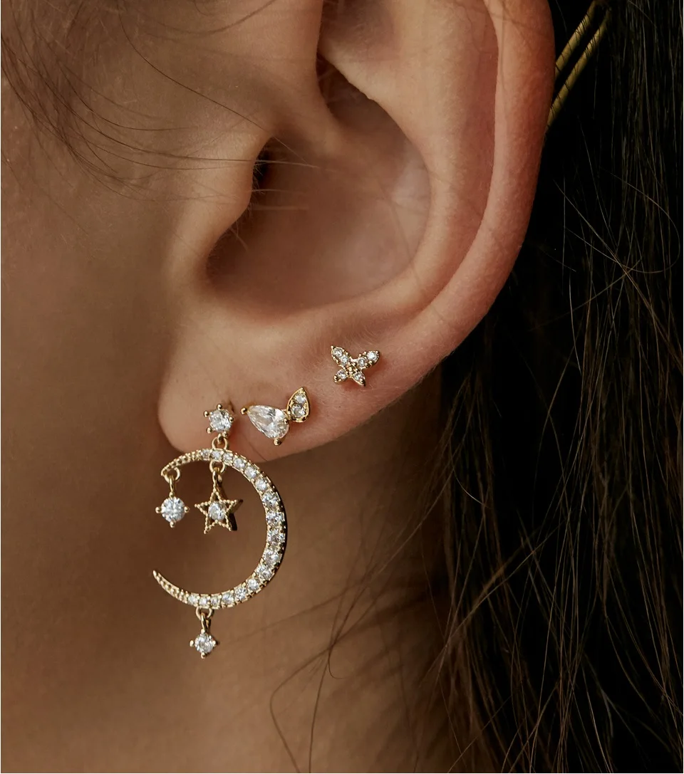 2019 Рождественский подарок ювелирные изделия Новое поступление Искрящиеся cz Шарм с Луной и звездой Звездный лунный свет висячие серьги