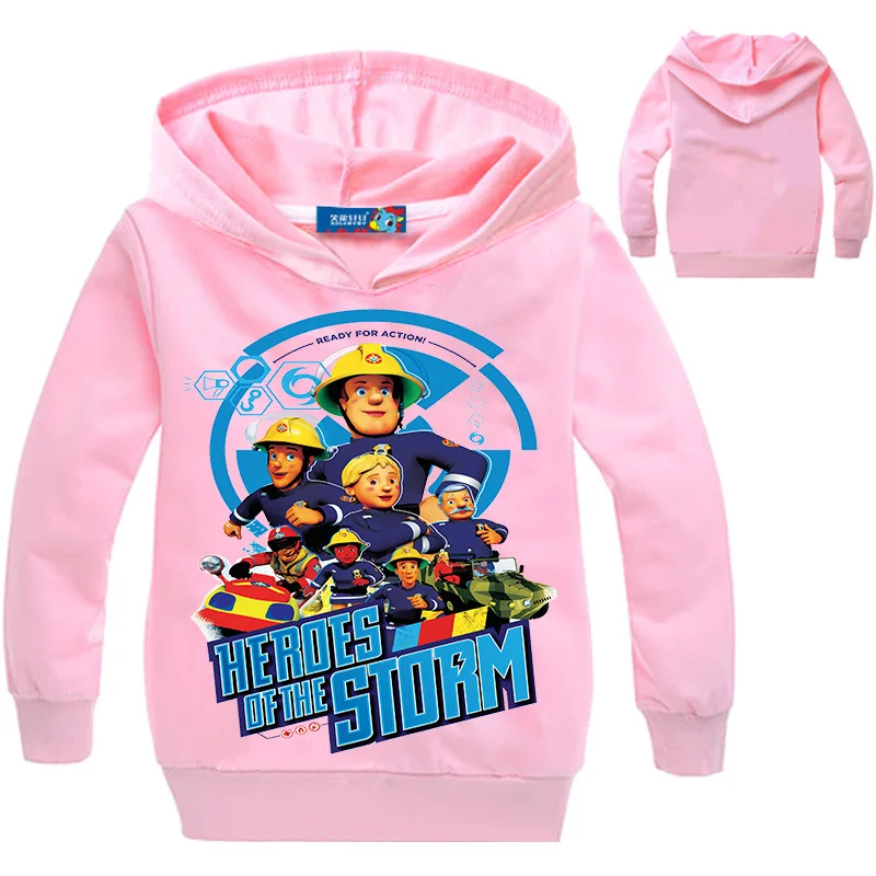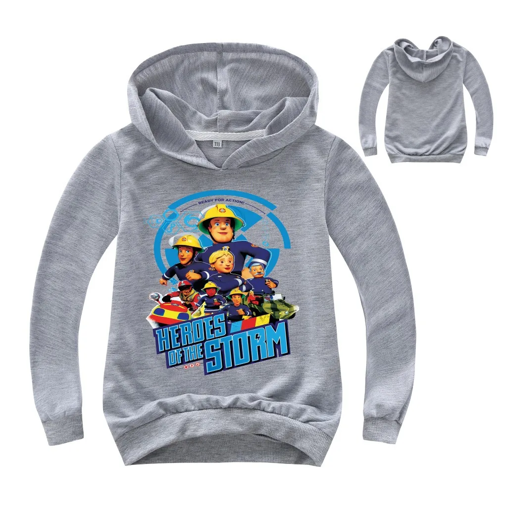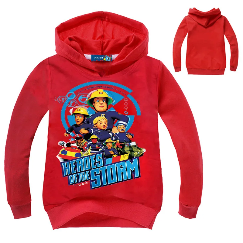 Новинка, Весенняя детская одежда, мультяшный Пожарный Сэм, футболки для маленьких мальчиков с длинным рукавом, детские толстовки, одежда для девочек, свитшоты, пальто