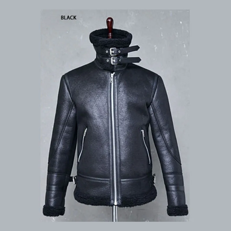 Теплая мужская зимняя куртка из искусственной кожи с меховым ремнем...