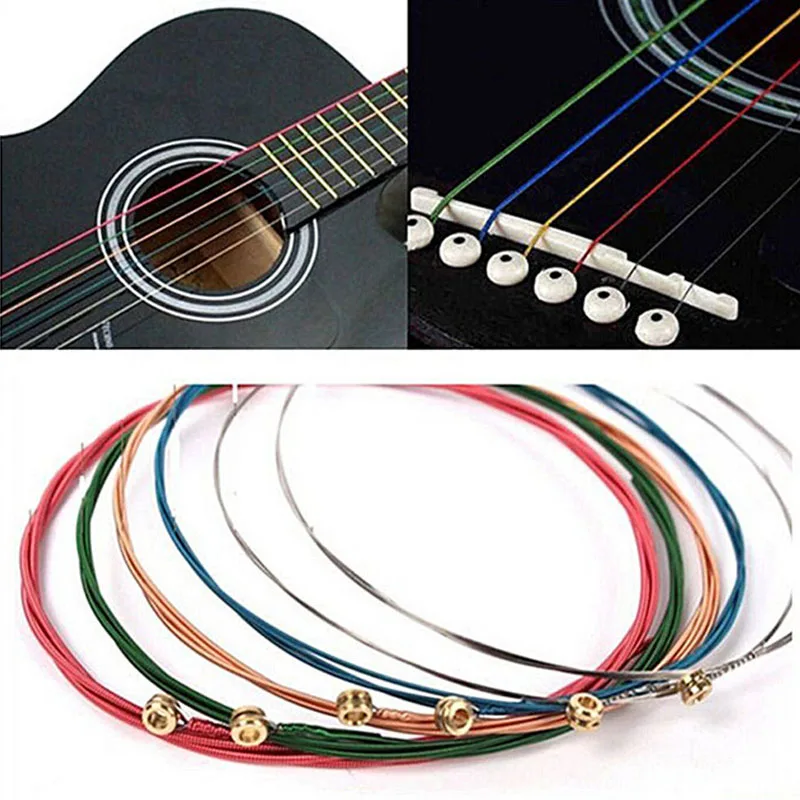 Многоцветные Струны для акустической гитары 6 шт.компл. Радужная красочная гитара струны E-A для акустической народной гитары Классическая гитара