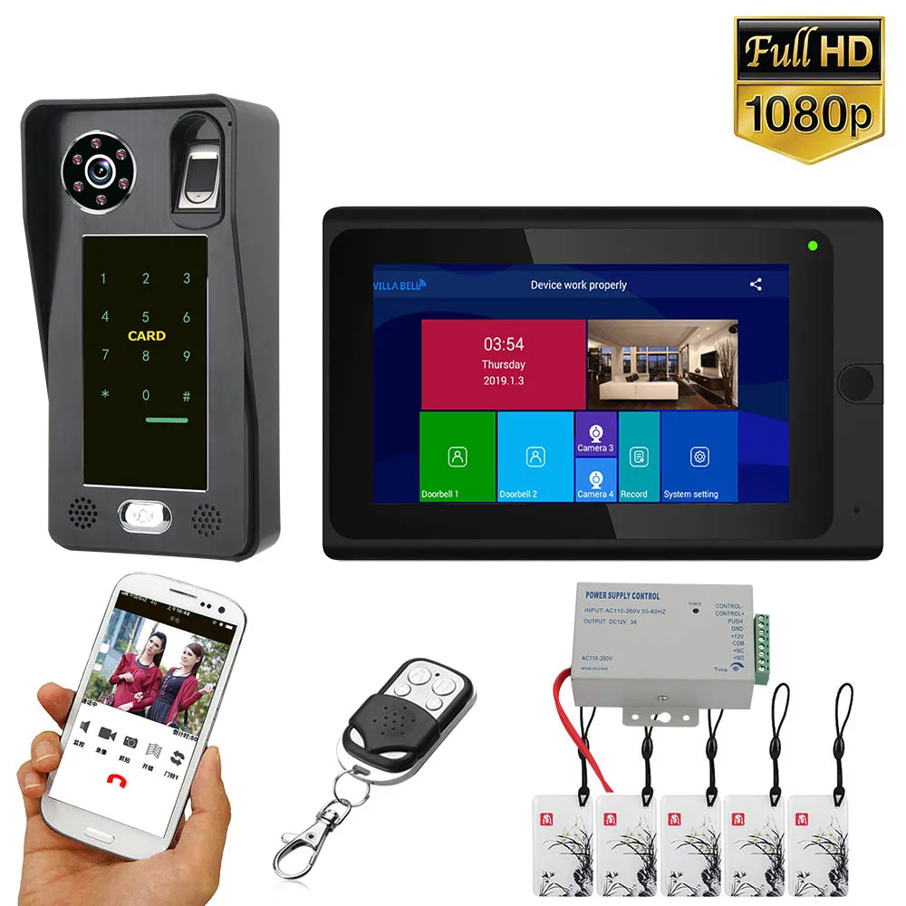 7 дюймов Wifi Беспроводный, через отпечатки пальцев IC карта видео дверной звонок Домофон Система с проводным AHD 1080 P система контроля доступа двери, поддержка дистанционного приложения разблокировка, запись, фото