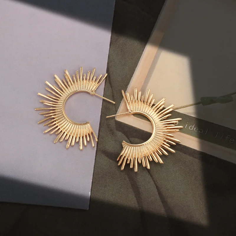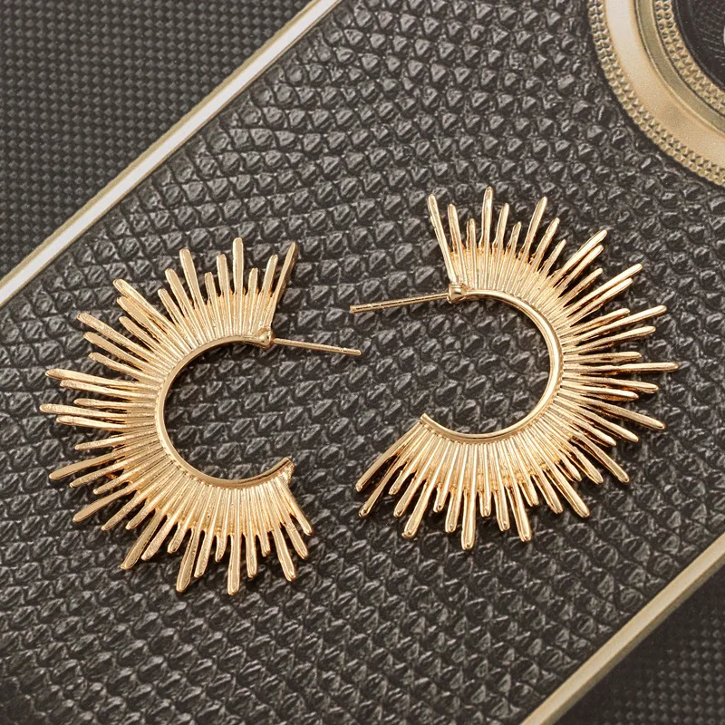 Золотые полукруглые серьги в форме шипов, Ретро стиль, неправильной формы в стиле бохо, блестящие простые серьги в форме солнца и звезды, роскошная Подарочная бижутерия