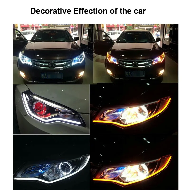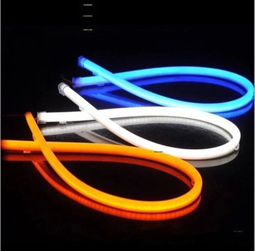 Дневные ходовые огни ангельские глазки, 2 шт., ультратонкие, 30 см, 45 см, 60 см, ДХО, гибкая светодиодная лента, стильный сигнал поворота, тормоз, белыйжелтыйсиний