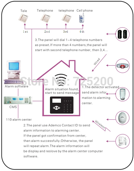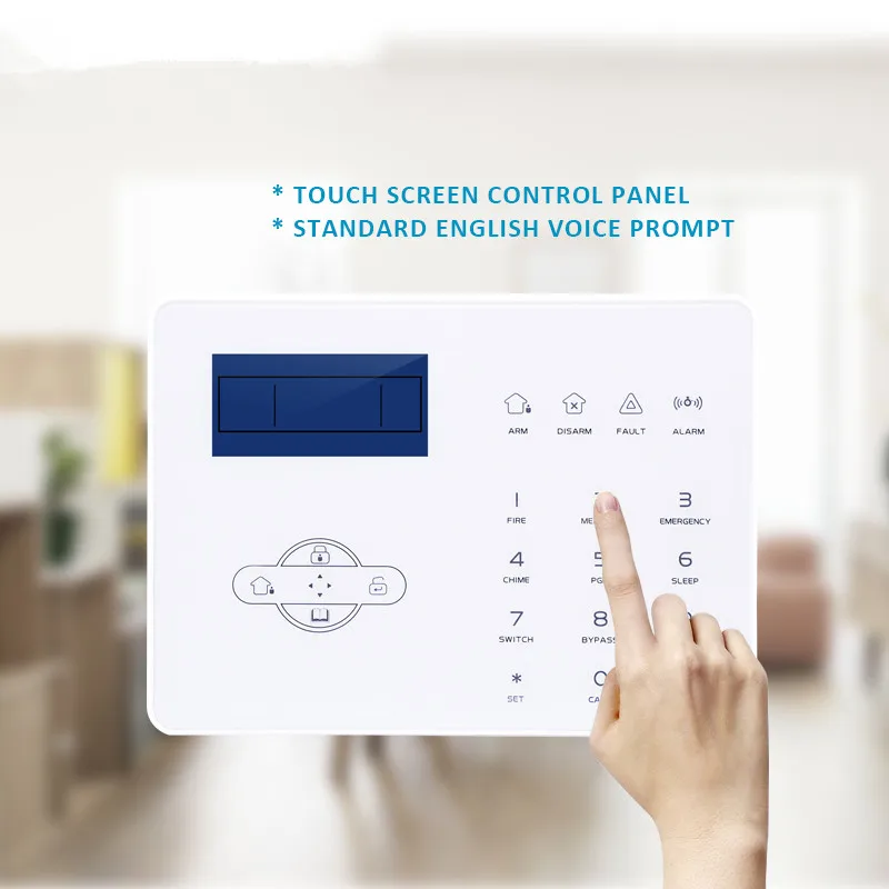 Glass стеклянная панель с полным сенсорным экраном.Indication индикация речи для всех этапов работы, ЖК-экран на английском языке.Electric 8 Электрический прибор управления, 1 беспроводная сирена, 1 беспроводной дверной звонок, встроенная звуковая Сирена.◎ 2 центра мониторинга телефон станции, 6 сигнализации телефон пользователя, контакт ID CSM протокол подключения.◎ Поддержка двустороннюю связь, позволяет работать с 8 двухстороннюю проводной клавиатуры, 8 двухполосный беспроводной клавиатуры, 8 двухполосный пульт дистанционного управления.Support поддержка протокола GPRS/4G, настройки сетевого будильника.Built Встроенный видео модуль, может просматривать видео выход в режиме онлайн.Monitoring мониторинг состояния беспроводной/проводной зоны в реальном времени. Мониторинг состояния беспроводного детектора в реальном времениTel телефон-линия выключения сигнализации и соседский телефон передачи сигнализации.◎ 4 групповые настройки времени arm/disarm. Дистанционно Управляйте, снимайте, слушайте.Resume состояние Arm/disarm возобновляется после выключения питания, можно выбрать сообщение arm/disarm в CMS свободно.64 64 журнал событий и запрос, 10s для записи.Беспроводная связь сигнализации.Wireless Беспроводная частота: 433 МГц/868 МГц