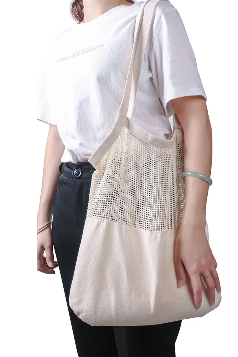 Сетчатые Сумки для покупок, хлопковые, экологически чистые, складные, многоразовые, для покупок, сетчатые, тканые хлопковые сумки, Новинка