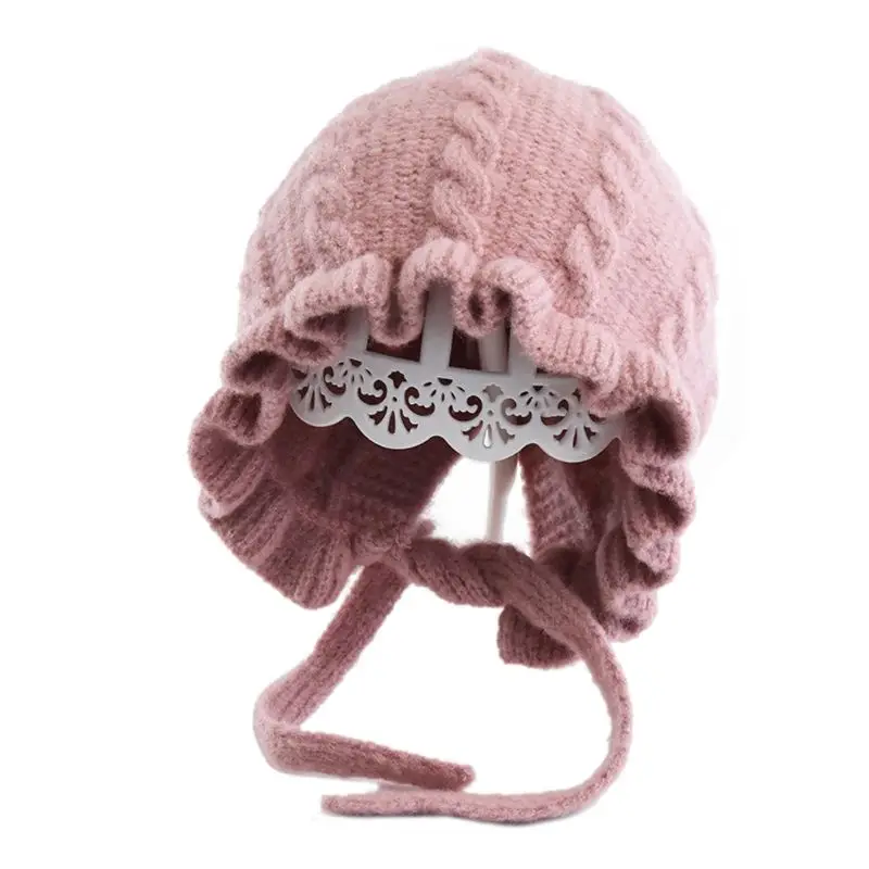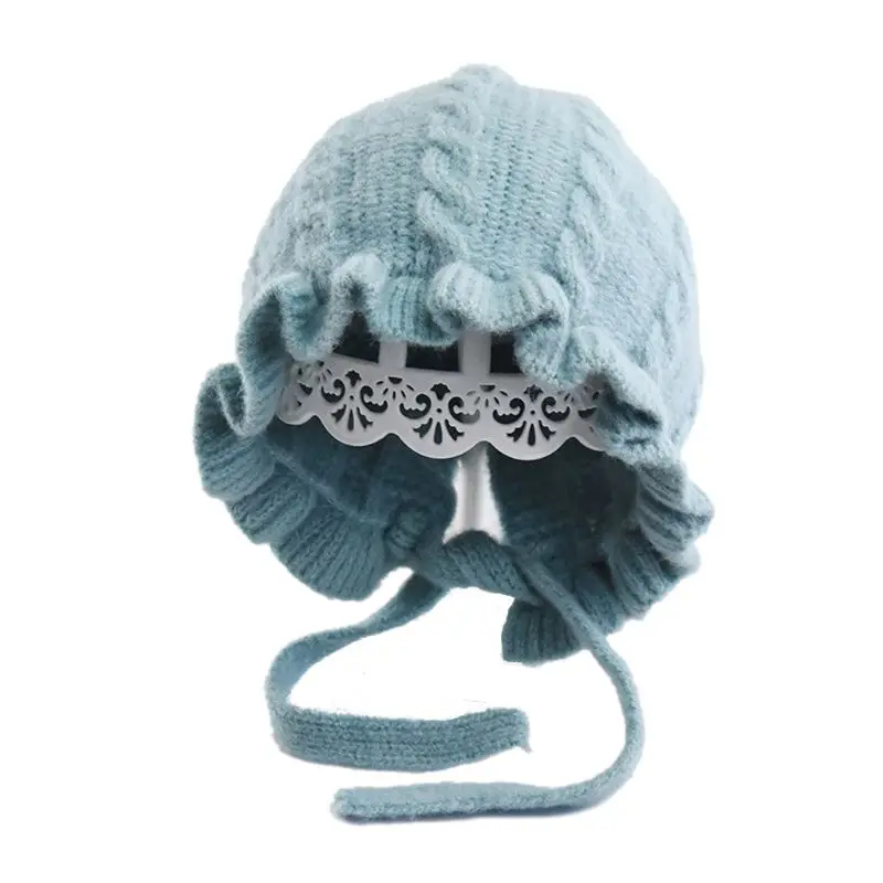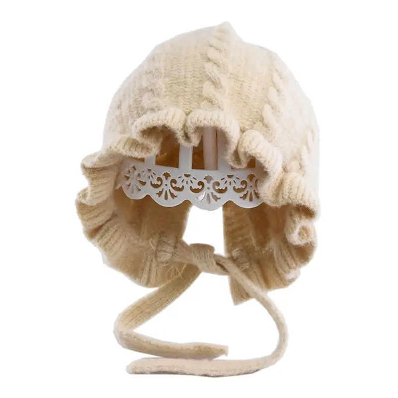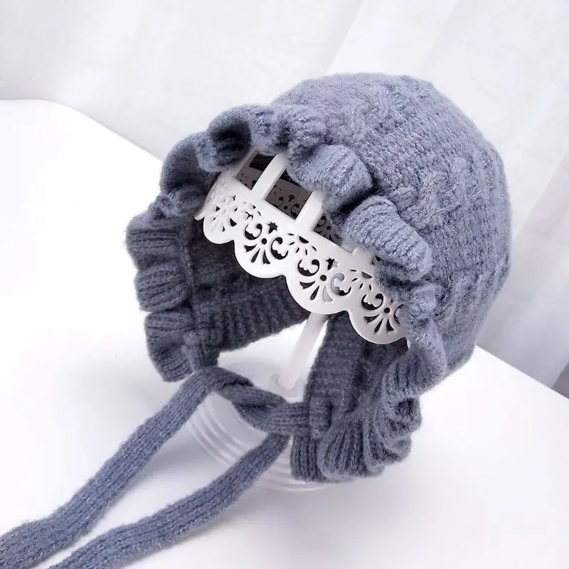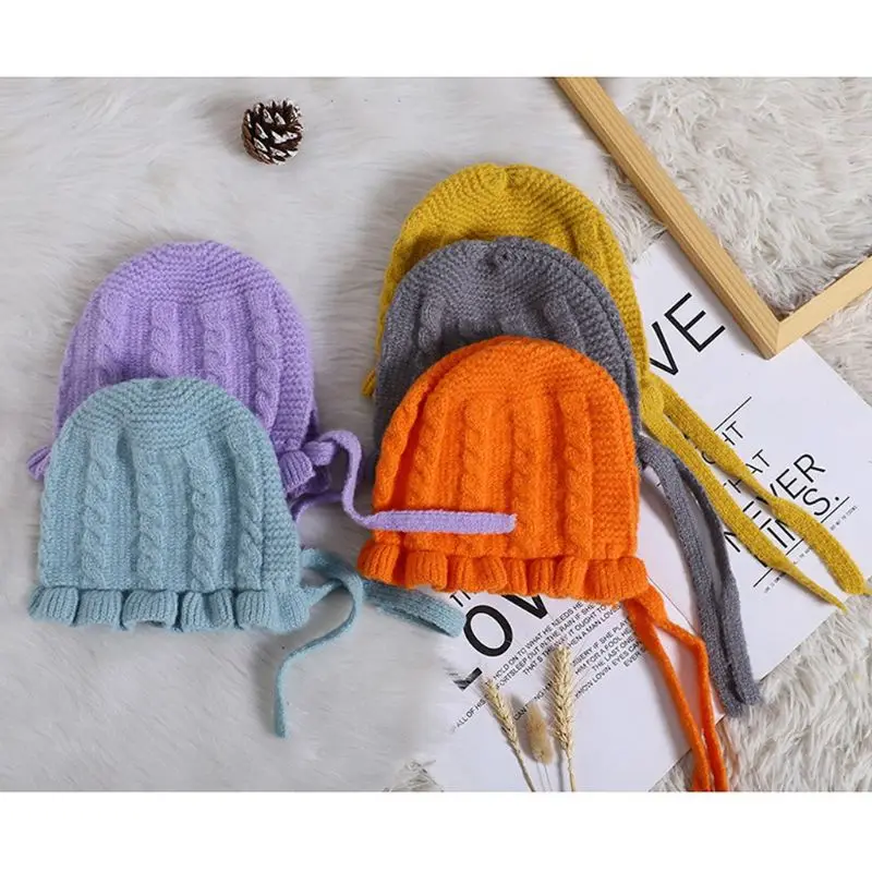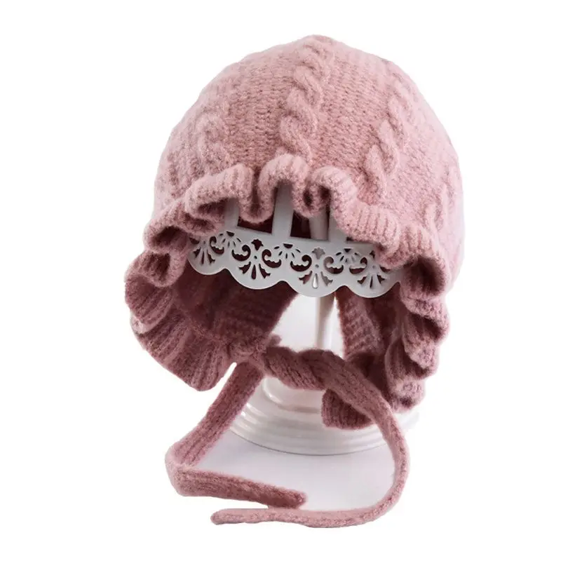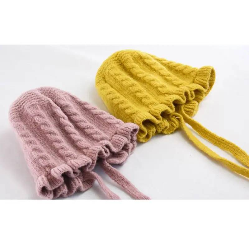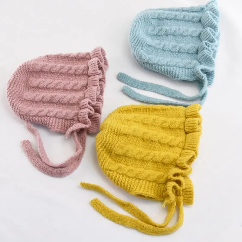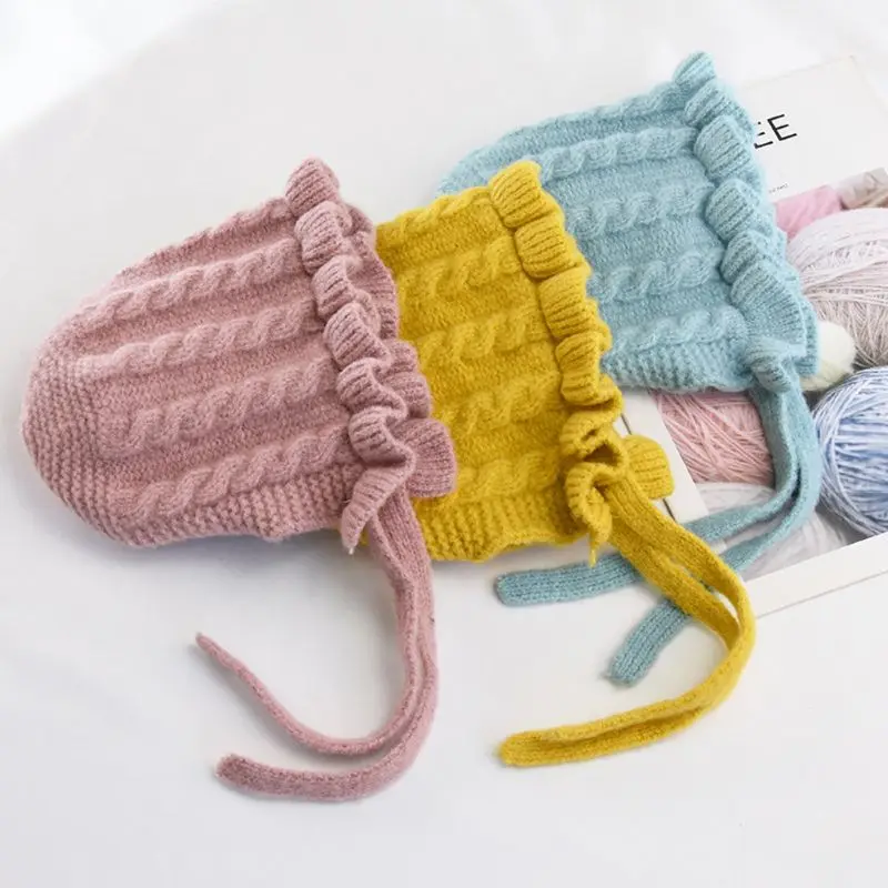 Шапка принцессы для маленьких девочек, кружевная вязаная зимняя шапка для новорожденных, детские шапки, детская шапка для девочек, теплая шапка для новорожденных