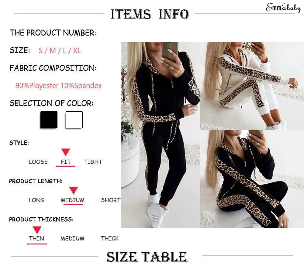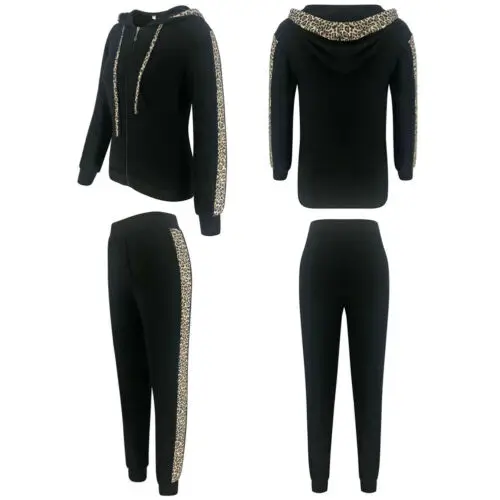 Модные повседневные женские леопардовые толстовки с длинным рукавом из 2 предметов Спортивные Топы И штаны спортивный костюм Толстовка спортивный костюм для бега